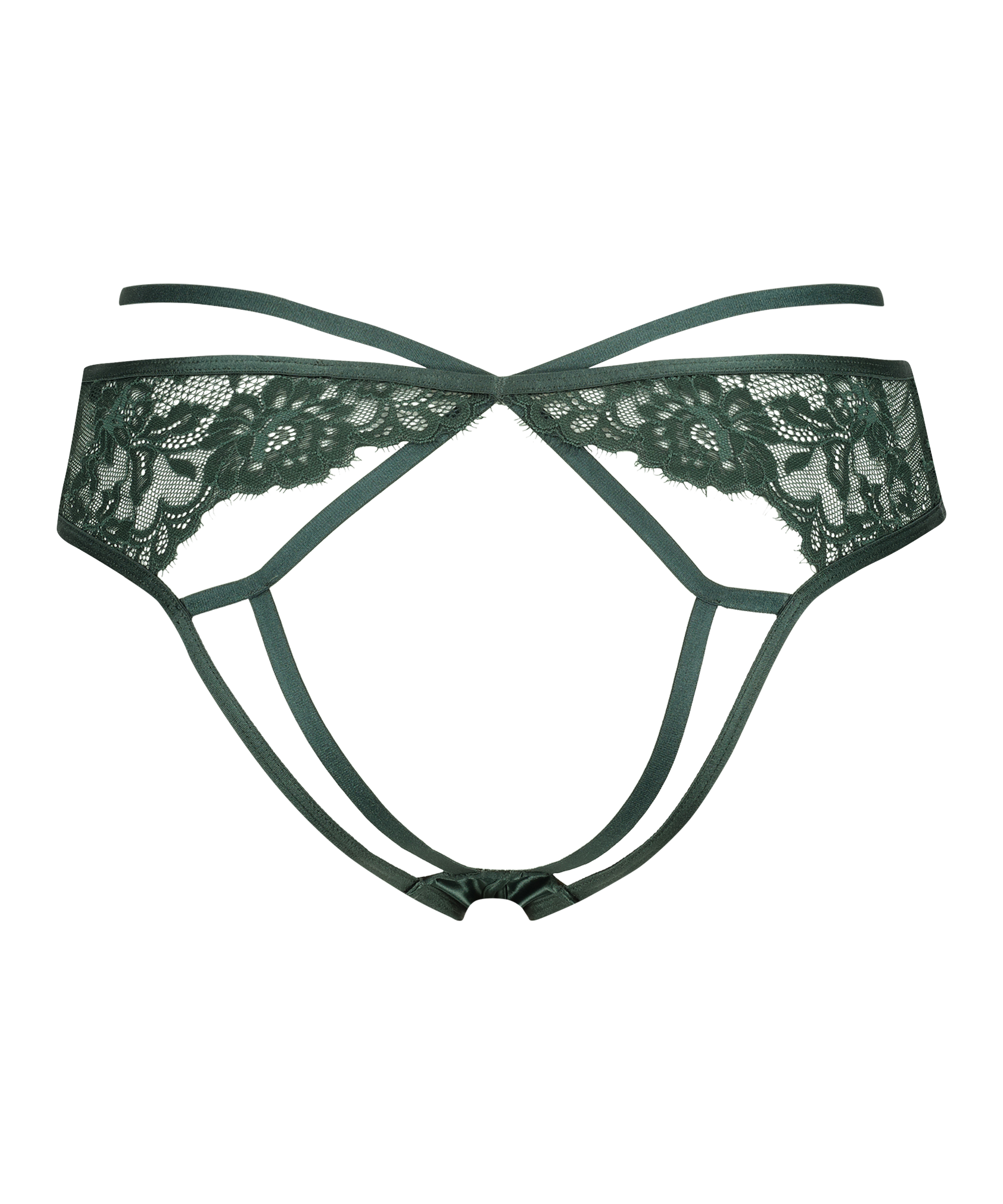 You're in for an exciting evening in these sexy knickers! These open crotch Brazilian knickers have lace on them. Part of our Private Collection. Combine with other items from the Private Collection.