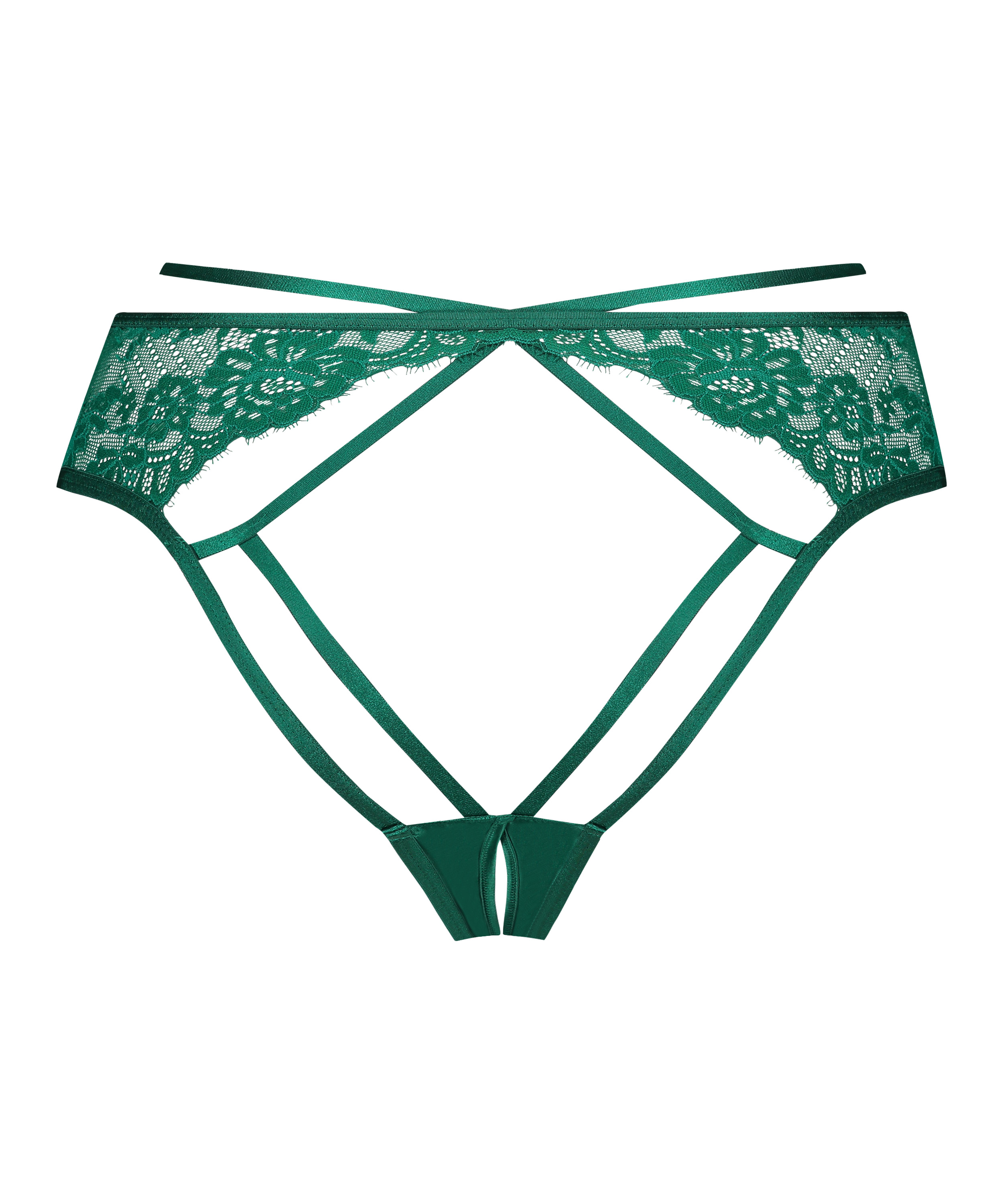 You're in for an exciting evening in these sexy knickers! These open crotch Brazilian knickers have lace on them. Part of our Private Collection. Combine with other items from the Private Collection.