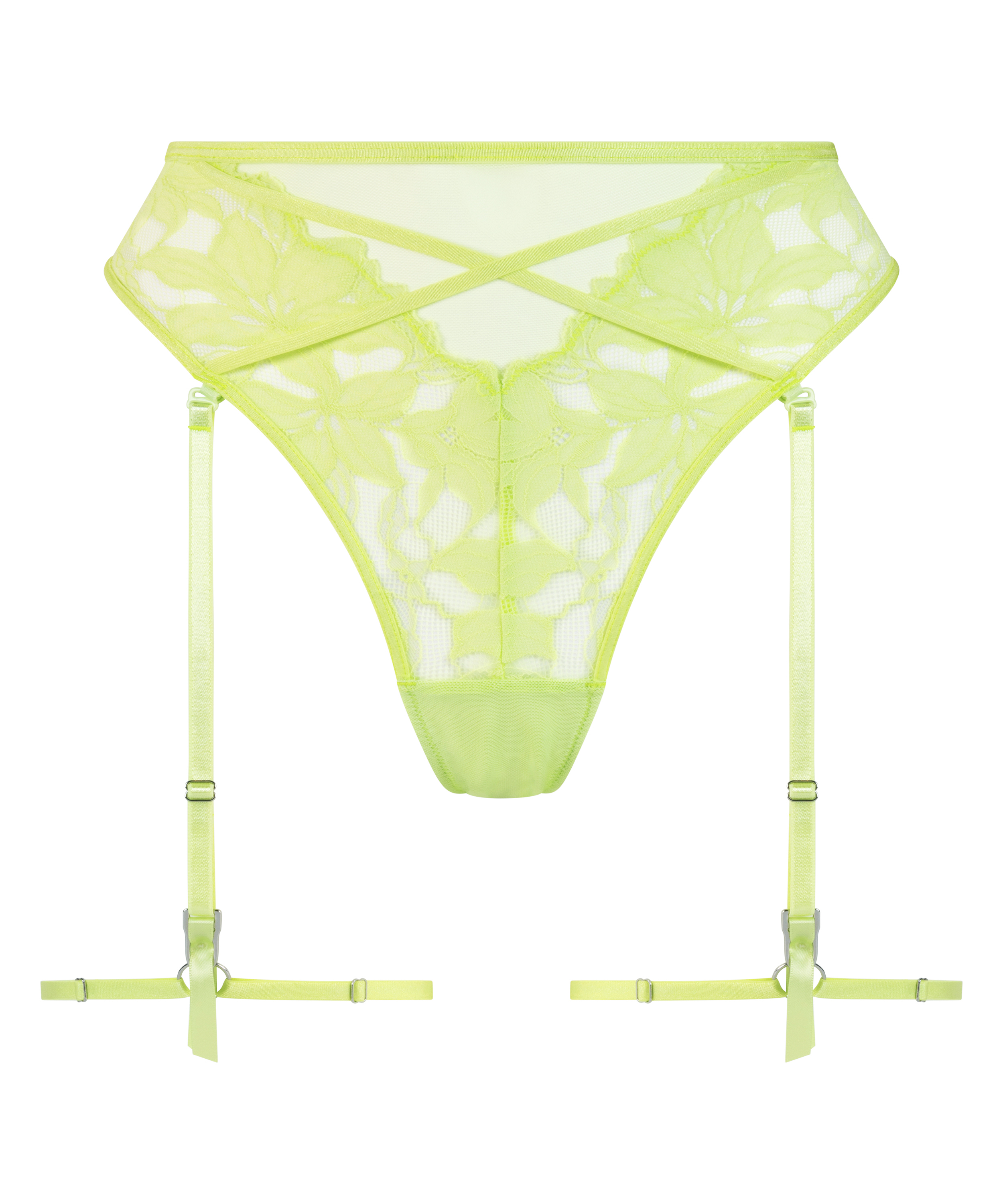 Step into elegance with our brazilian. This captivating piece features delicate lace and mesh that combine a senaul design. Strappy accents add a bold, modern edge, while the removable garter belt offers versatile styling options. Combine with the matching bra for a comlpete look.