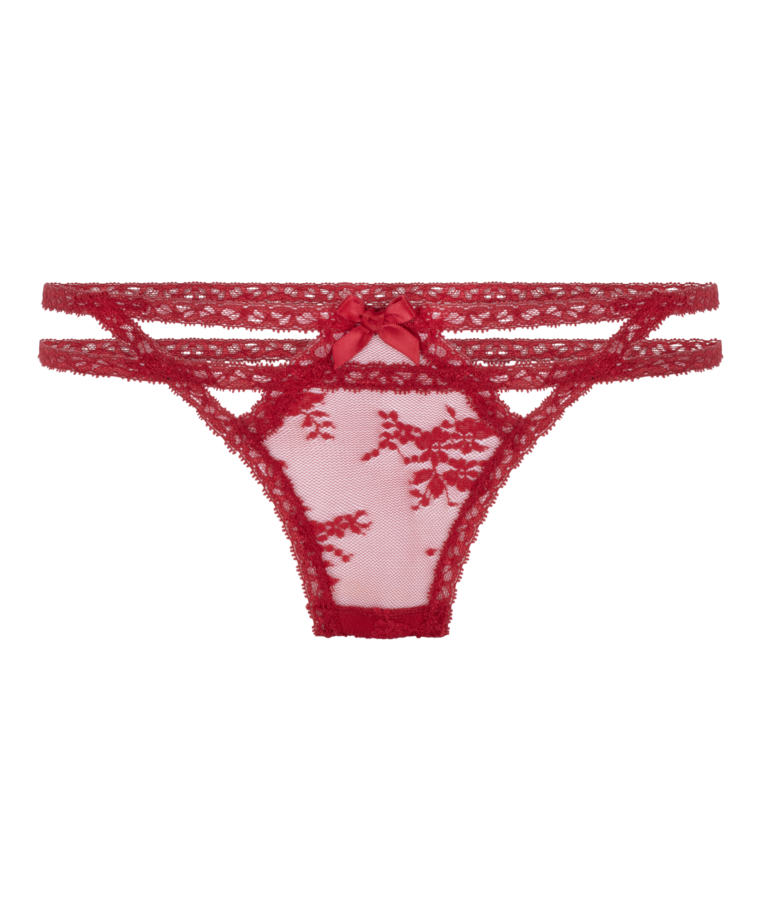 This thong is an absolute must-have in your collection! It has pretty strappy details and lots of lace. Combine with your favourite bra!