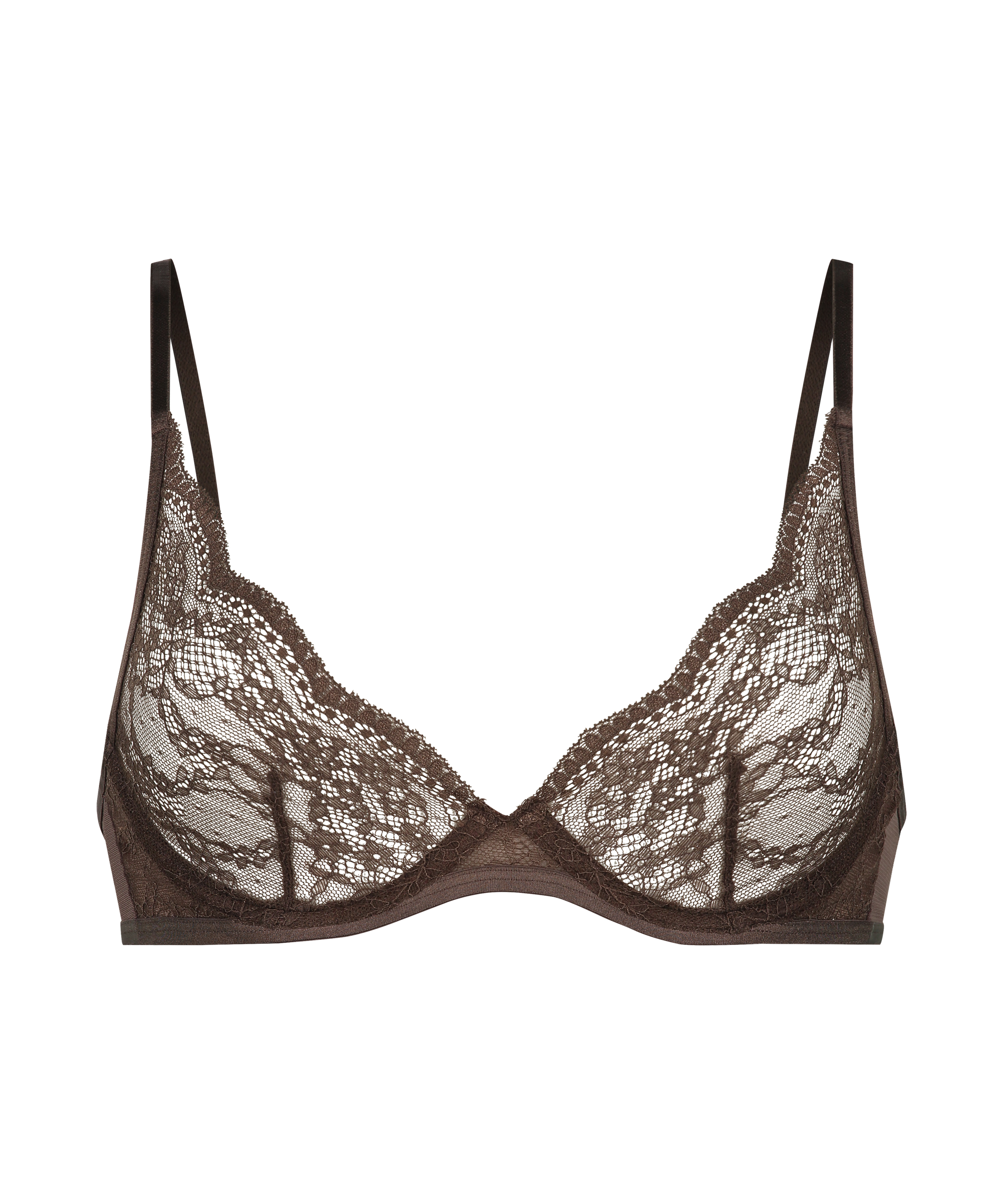 Shine in this beautiful bra! The bra is non-padded and underwired. The lashings of lace have a lovely interwoven pattern. Combine with matching knickers.