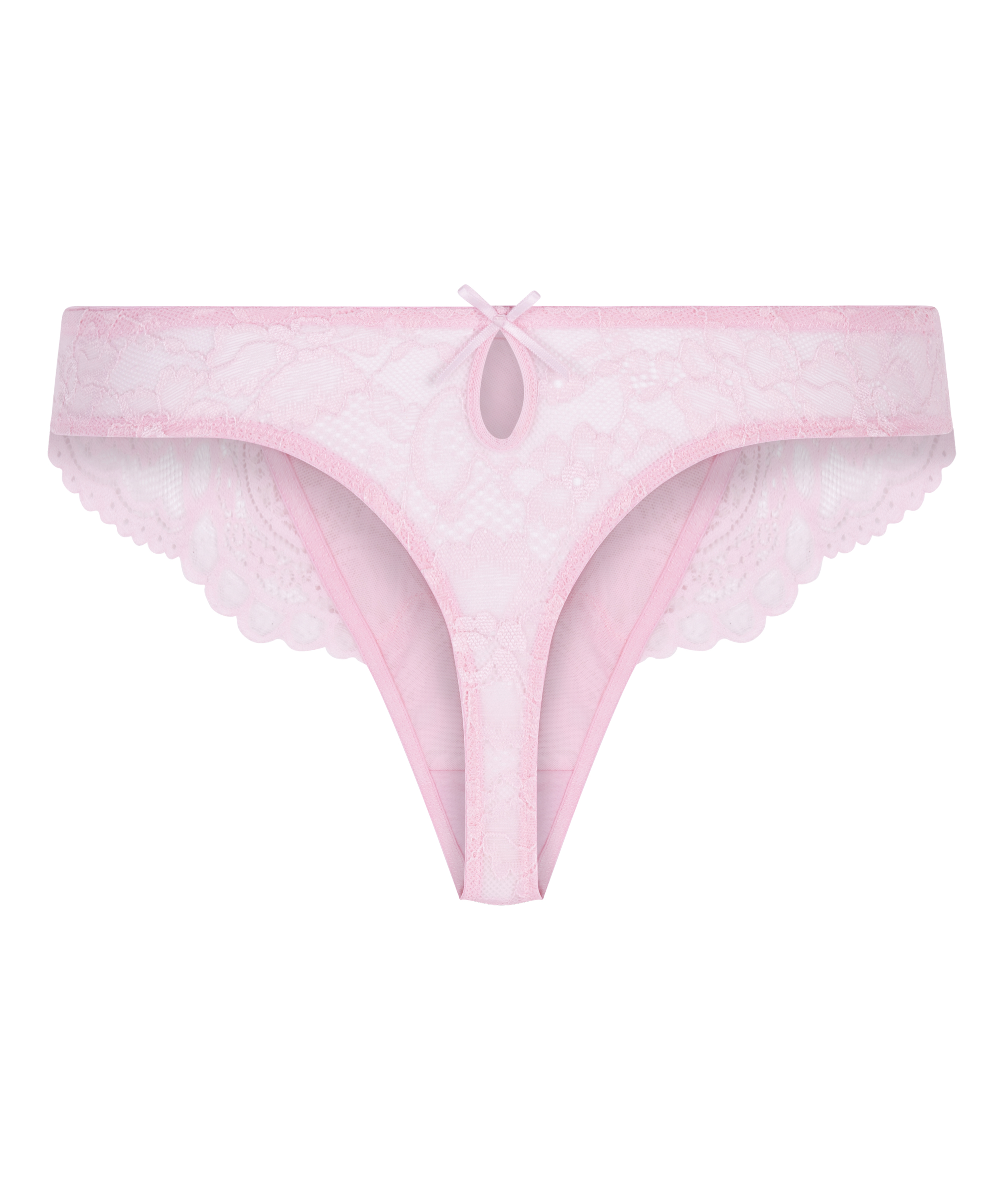A little lace never hurts! This thong is finished with semi-transparent pink lace. Add a matching bra for a complete look.