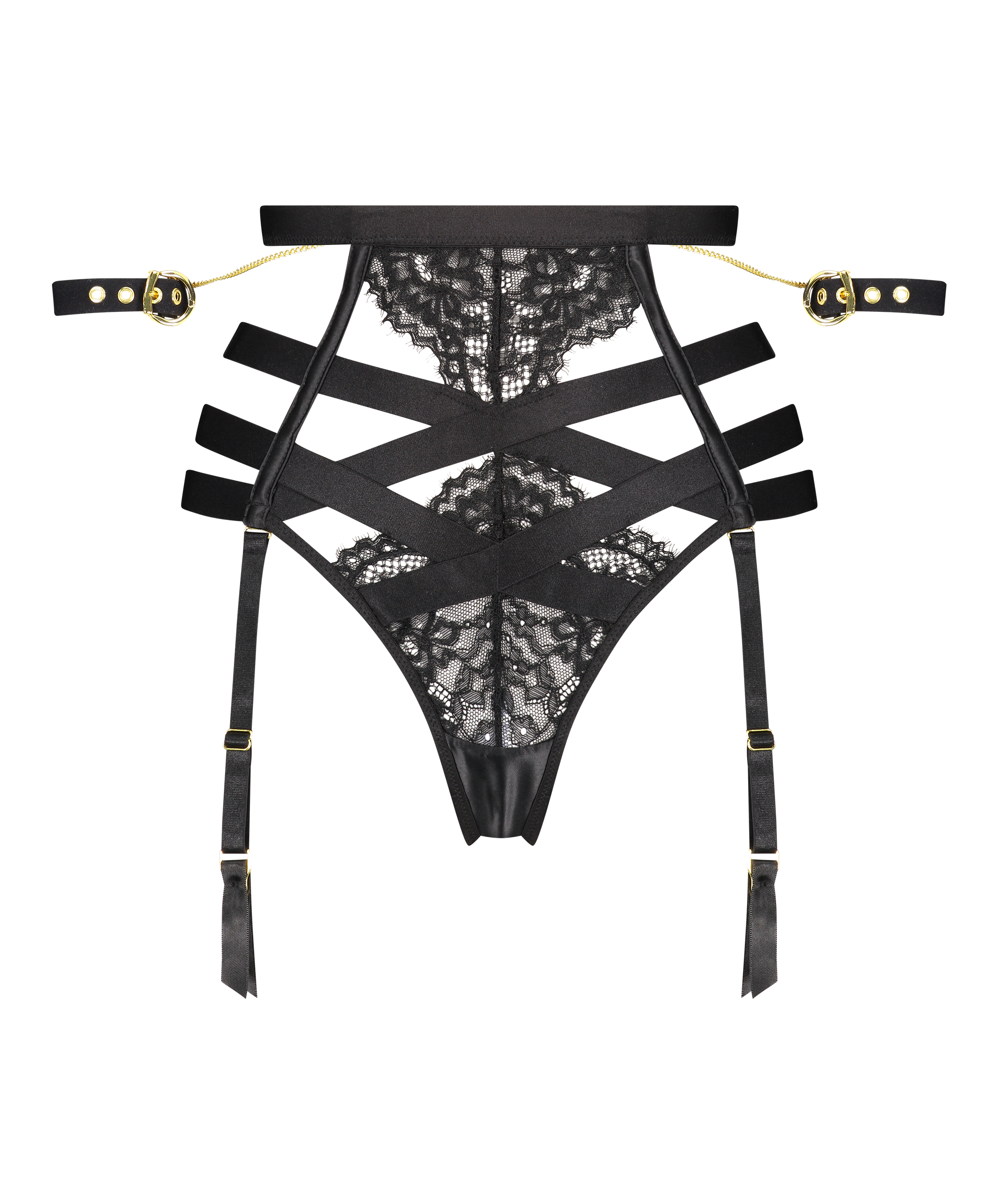 Bedroom passion guaranteed with this high waist thong from the Private Collection. It has an open crotch and can be combined with stockings: super sexy! For extra excitement, there are handcuffs that can be unfastened from the knickers. Combine with the matching bralette for a complete set.