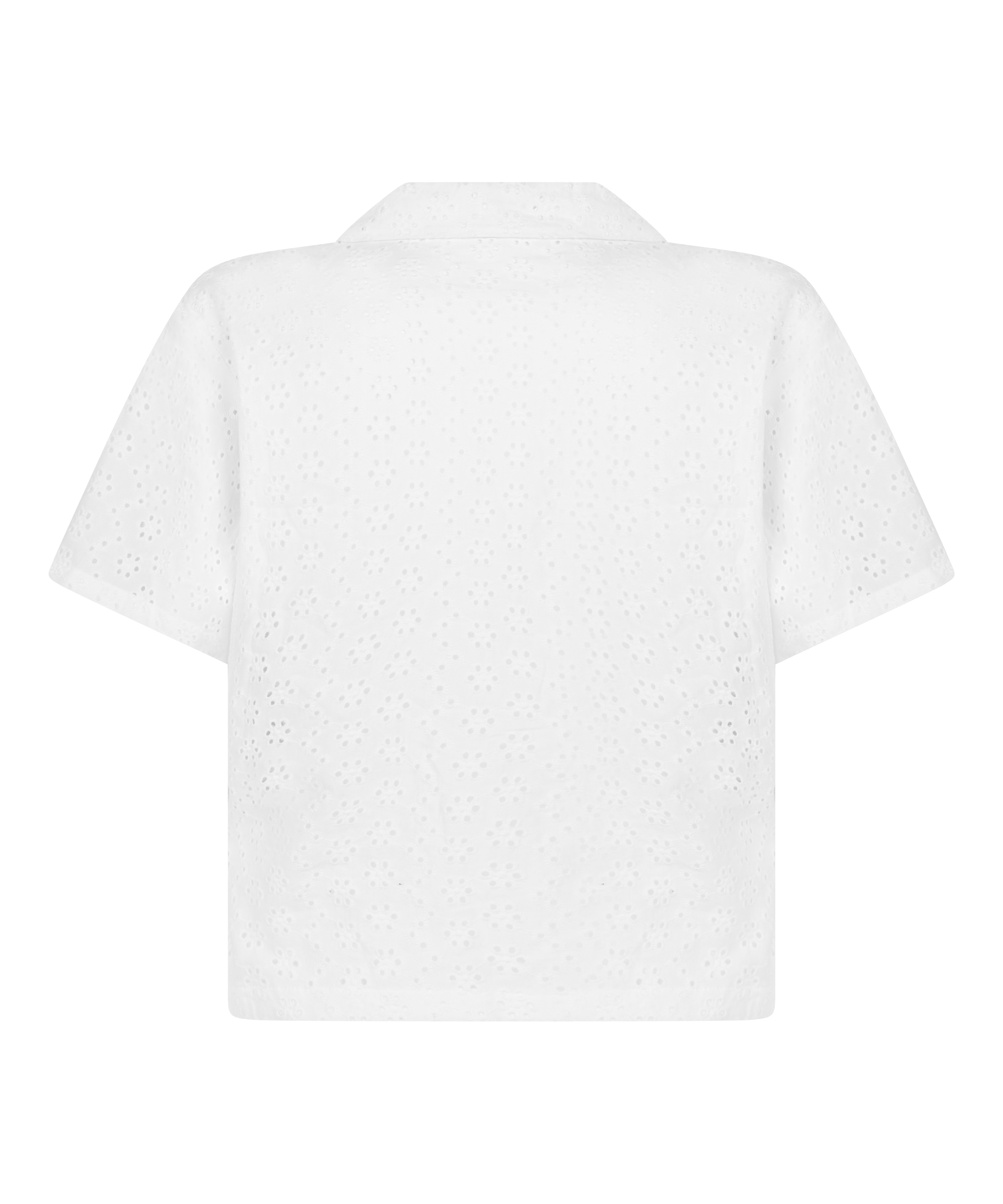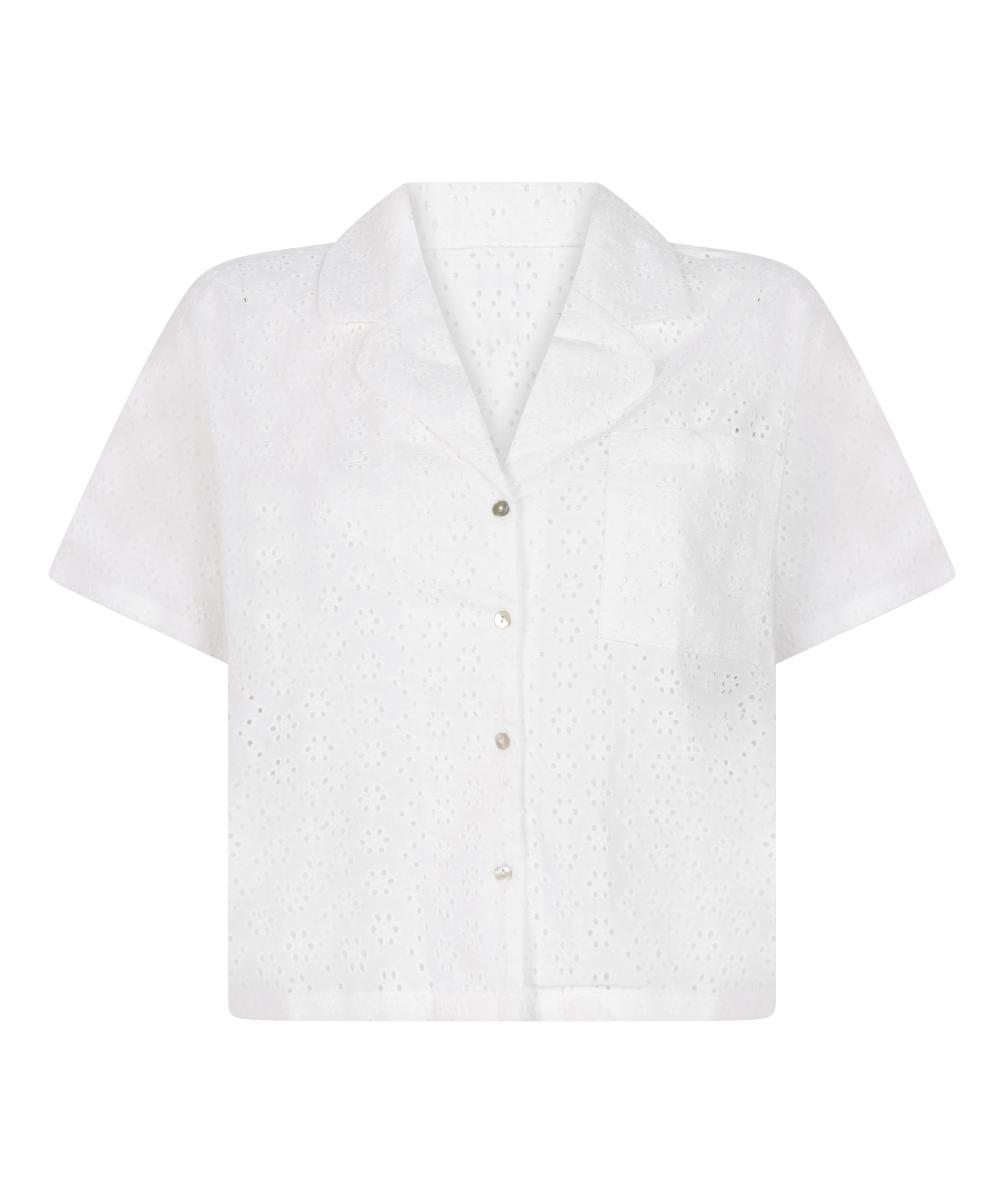 Elevate your look with this pyjama jacket. Featuring a delicate broderie pattern for a feminine touch. Designed with a relaxed fit this jacket is perfec for lounging around he house,.