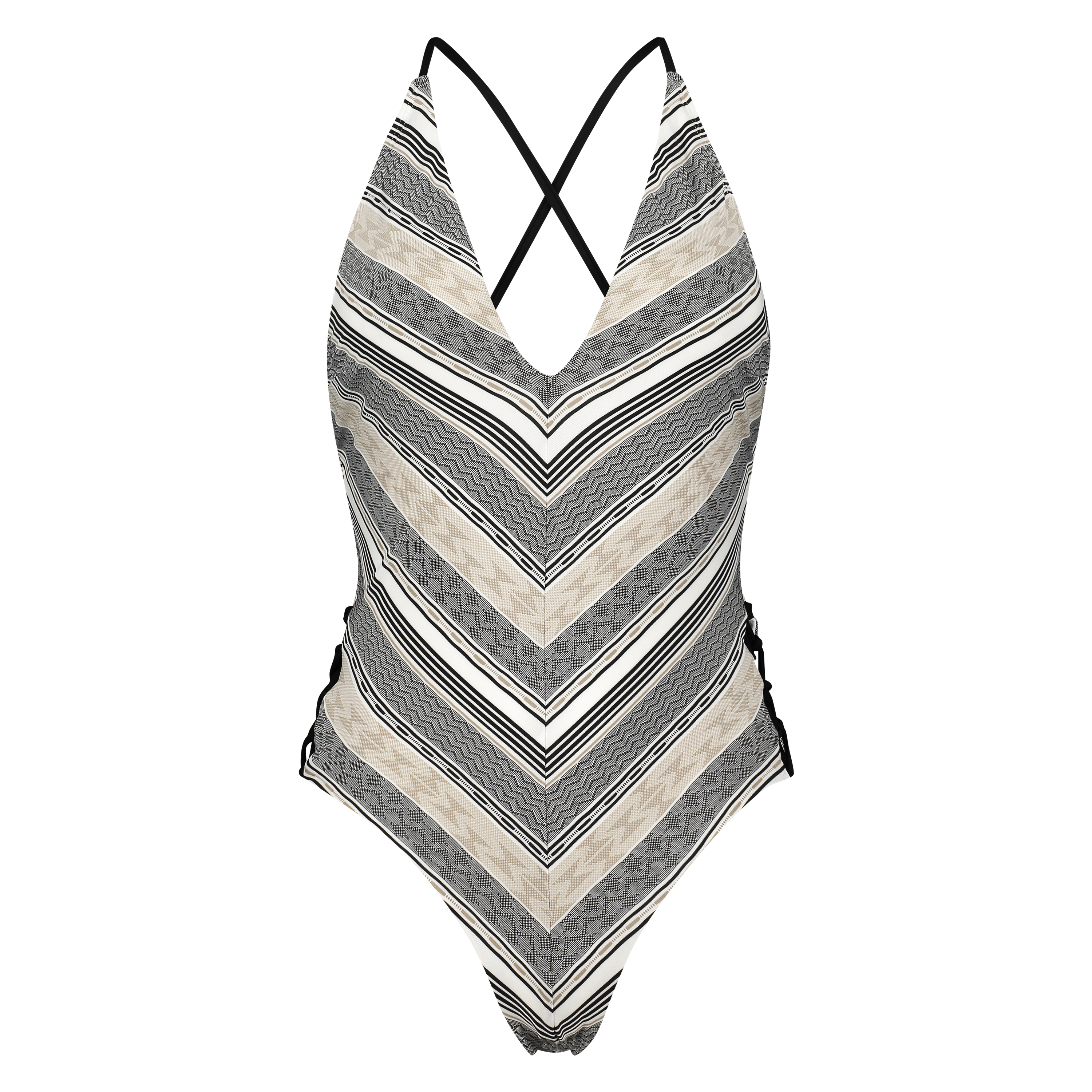 This swimsuit features an attractive tribal print and has straps that cross on the back. A lace-up detail on the side adds a finishing touch. From our Doutzen collection. Note: There may be slight differences in the print of the product on the picture and the actual fabric.