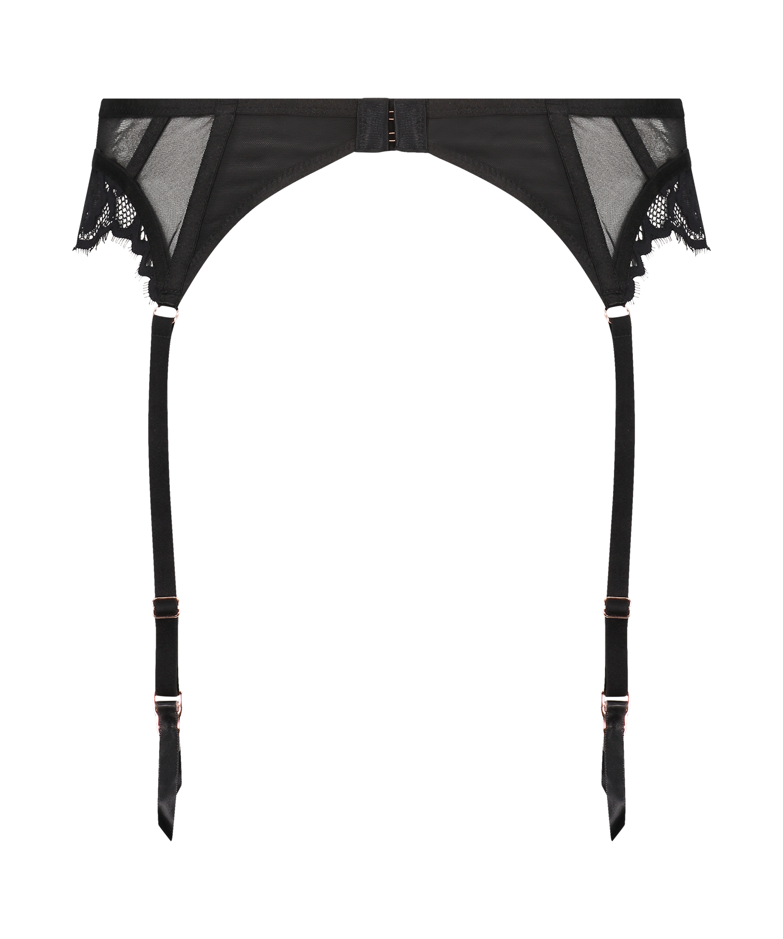 Finish off your sexy set with these suspenders! They feature lace all throughout and have frontal, side, and back boning for the most support. Pair with the matching set and hosiery! Part of the Noir collection.