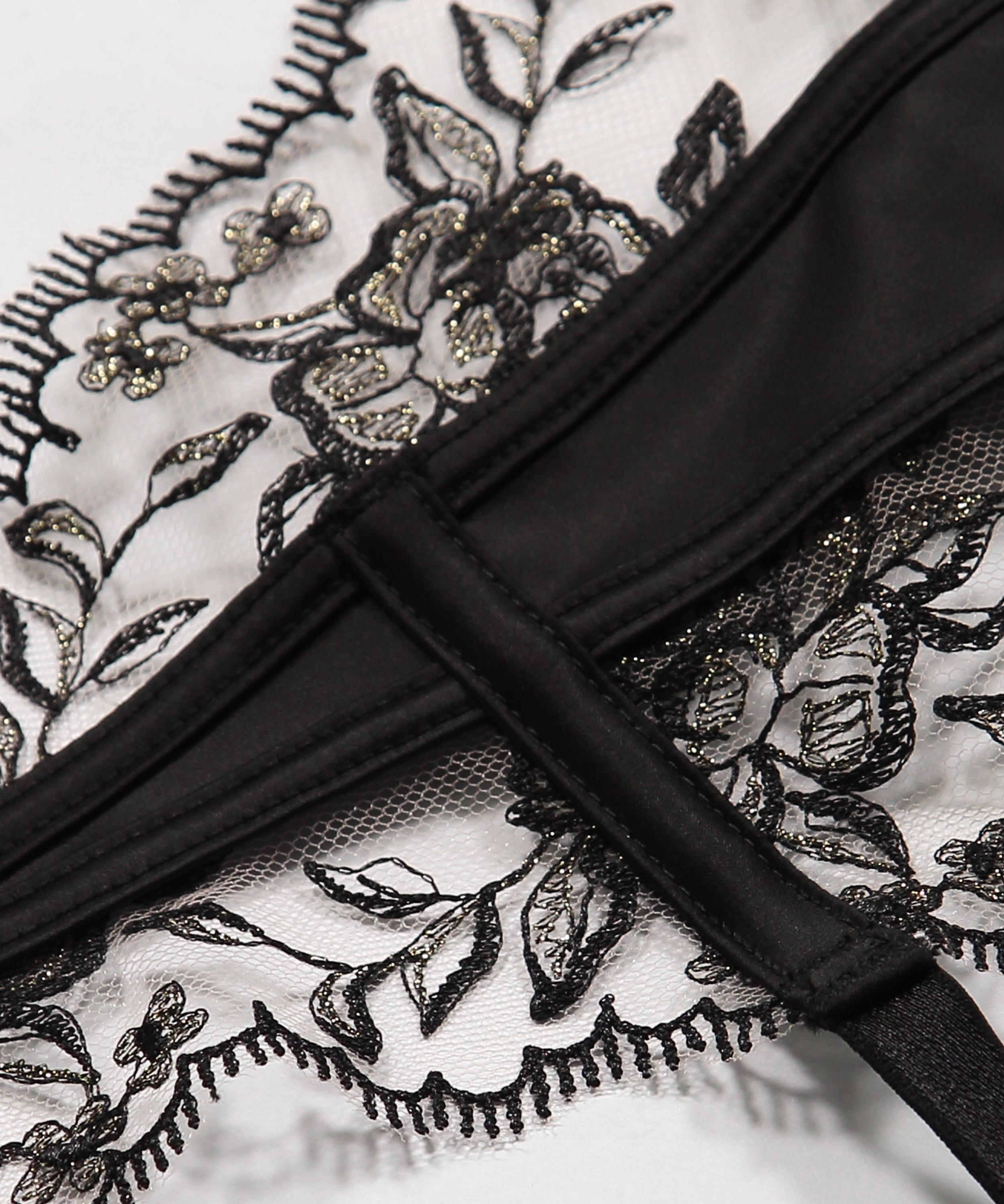 Complete your lingerie set with these stunning suspenders. Trimmed with lurex thread, giving an opulent look&feel. Combine with other matching items.