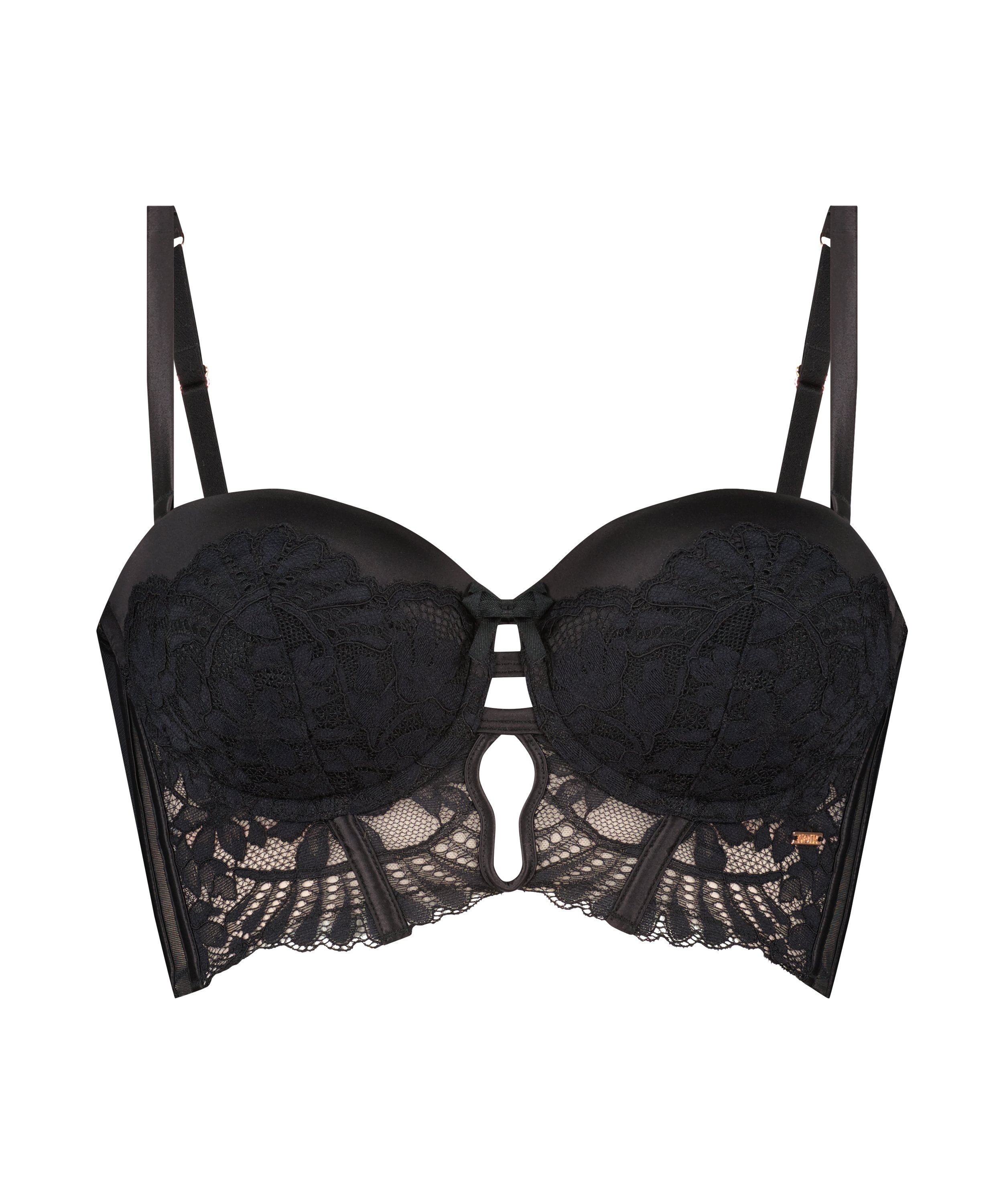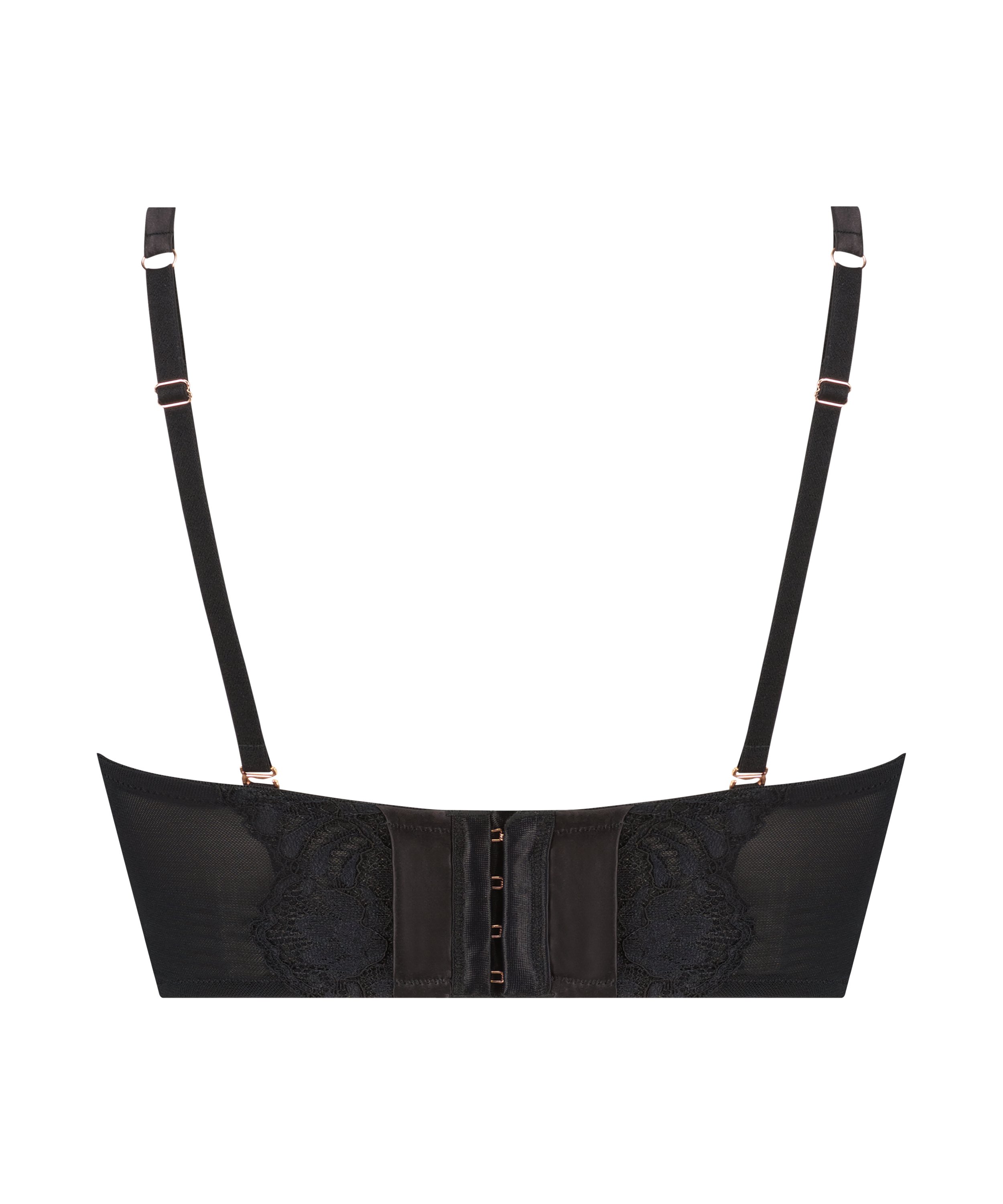 This bra has such a sexy look & feel! It is underwired, padded and has a longline shape. Match this with the detachable straps and you got yourself a bra you cannot miss! Wear it your way with or without the straps making this bra your next versatile must-have. Combine with the matching bottoms for a complete set. Part of the Noir collection.