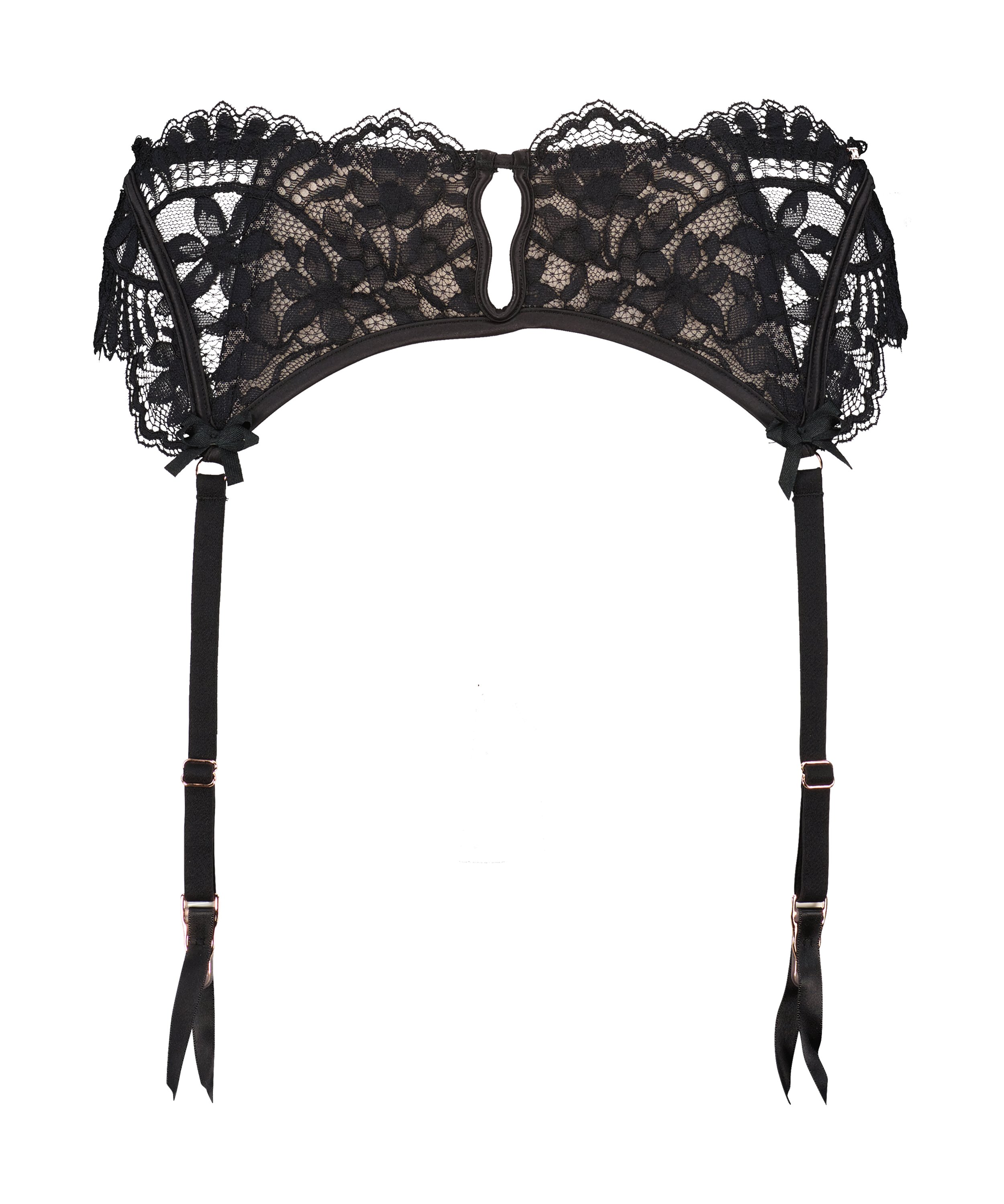 A beautifully designed with floral lace suspender belt! Wear this style how you see fit with adjustable suspender straps, a hook-and-eye fastening, cute cut-out details and delicate bows on the front. This piece is just what you need for a finishing touch to your Jamie lingerie set! Part of the Noir collection.