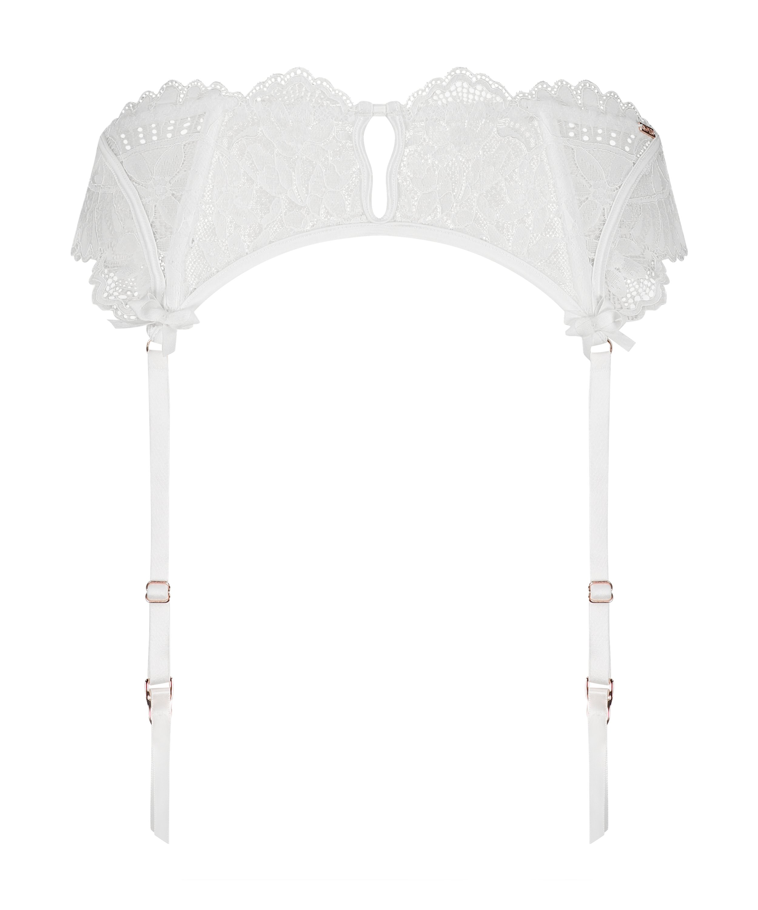 A beautifully designed with floral lace suspender belt! Wear this style how you see fit with adjustable suspender straps, a hook-and-eye fastening, cute cut-out details and delicate bows on the front. This piece is just what you need for a finishing touch to your Jamie lingerie set! Part of the Noir collection.