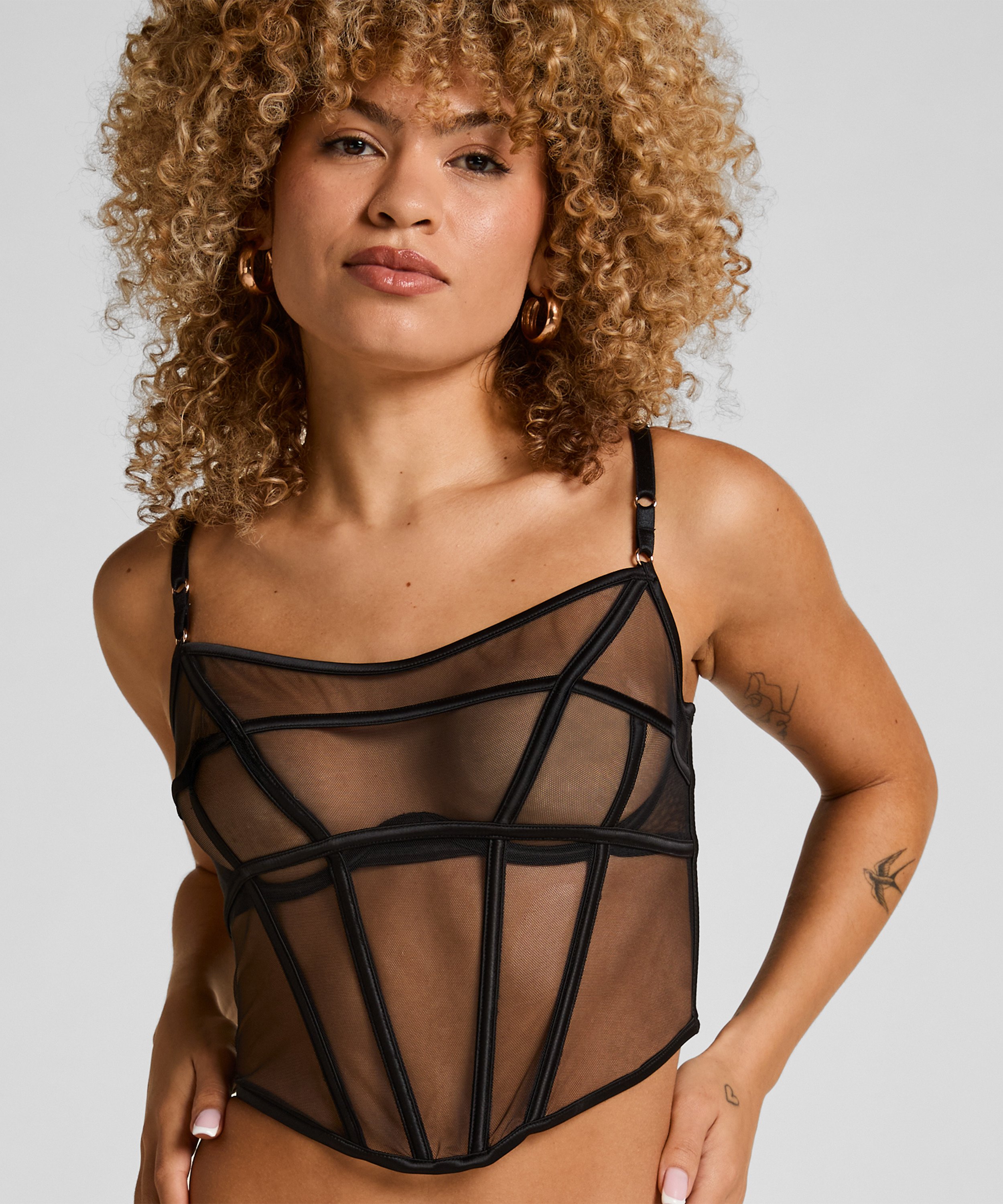 Unleash your bold side with this daring thong that redefines minimalism with maximum impact. Made from mesh, strappy detailing, and cut-outs, this piece is made for those who love to stand out. The thong accents contour the body, creating a sculpted silhouette. Combine with the matching bra for a complete look.