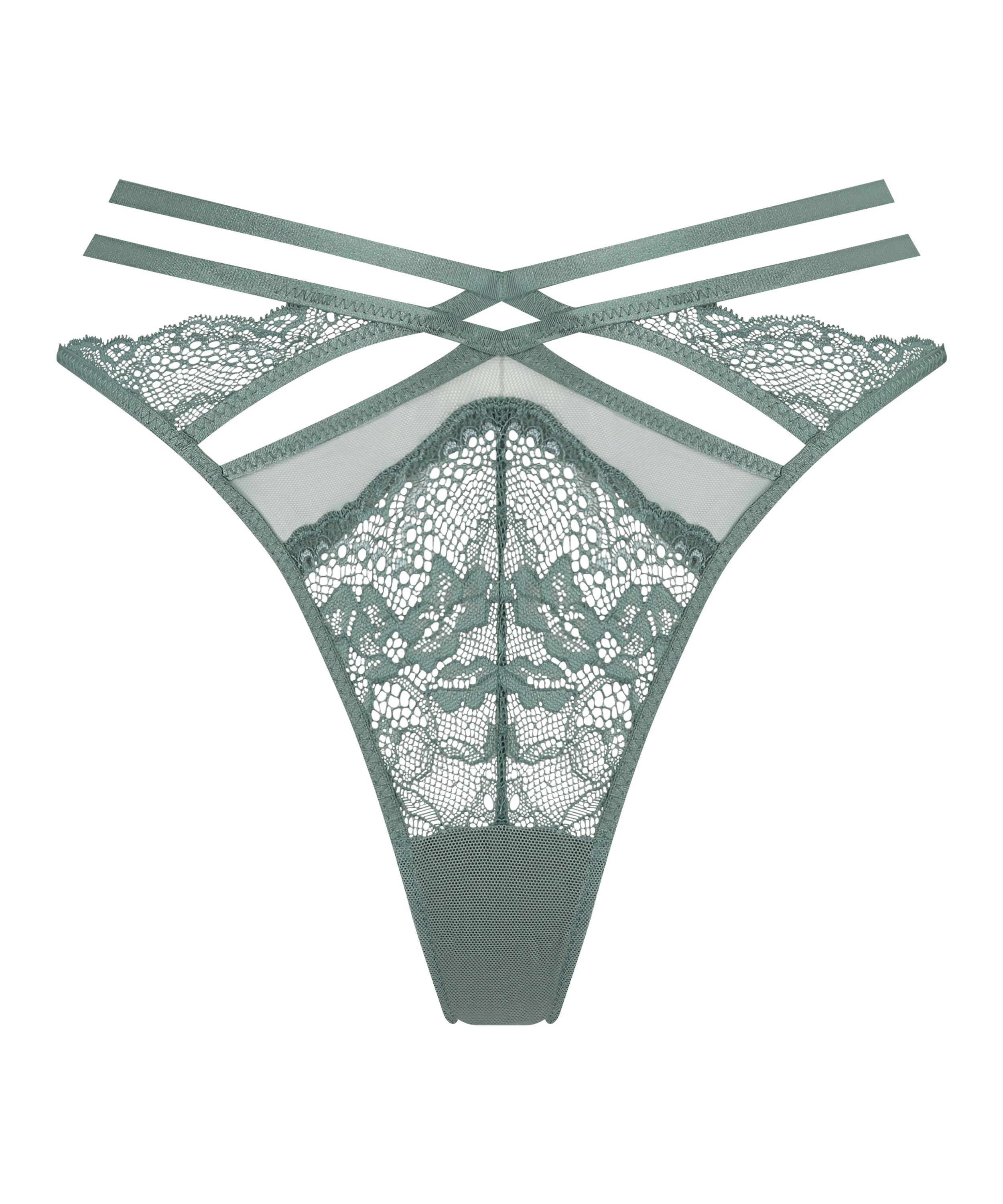 Elevate your lingerie game with this beautiful thong! It has lace details in the front and a sexy strappy design all around. Combine this thong with one of our current favorites!