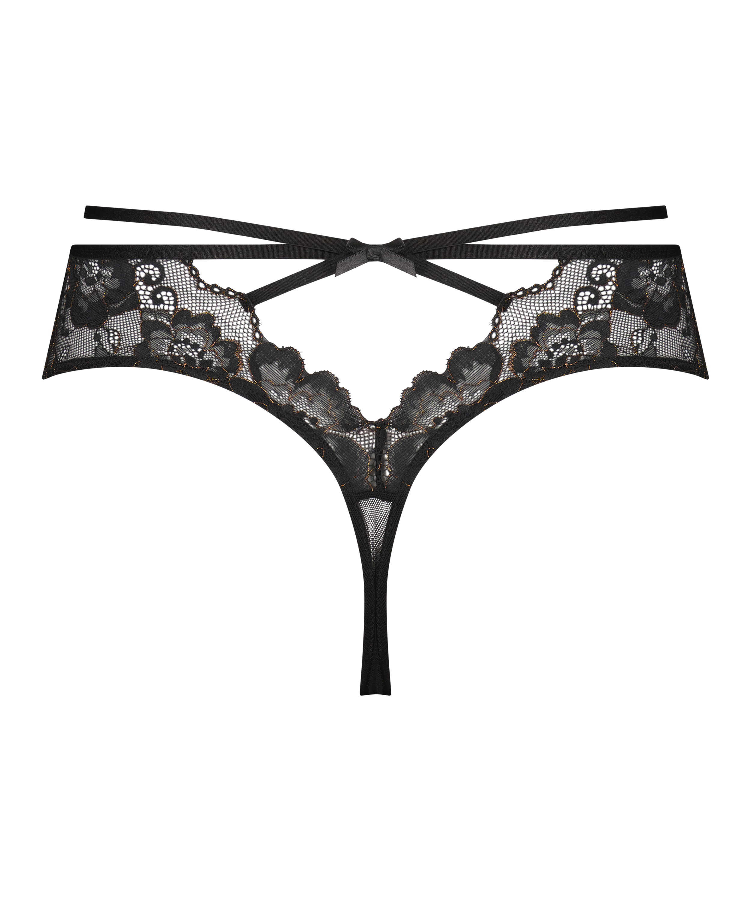 Feel super sexy in this thong! It is mainly made of lace, with a cute bow at the front and the strappy details are the perfect finishing touch. Combine with your own favorite items.