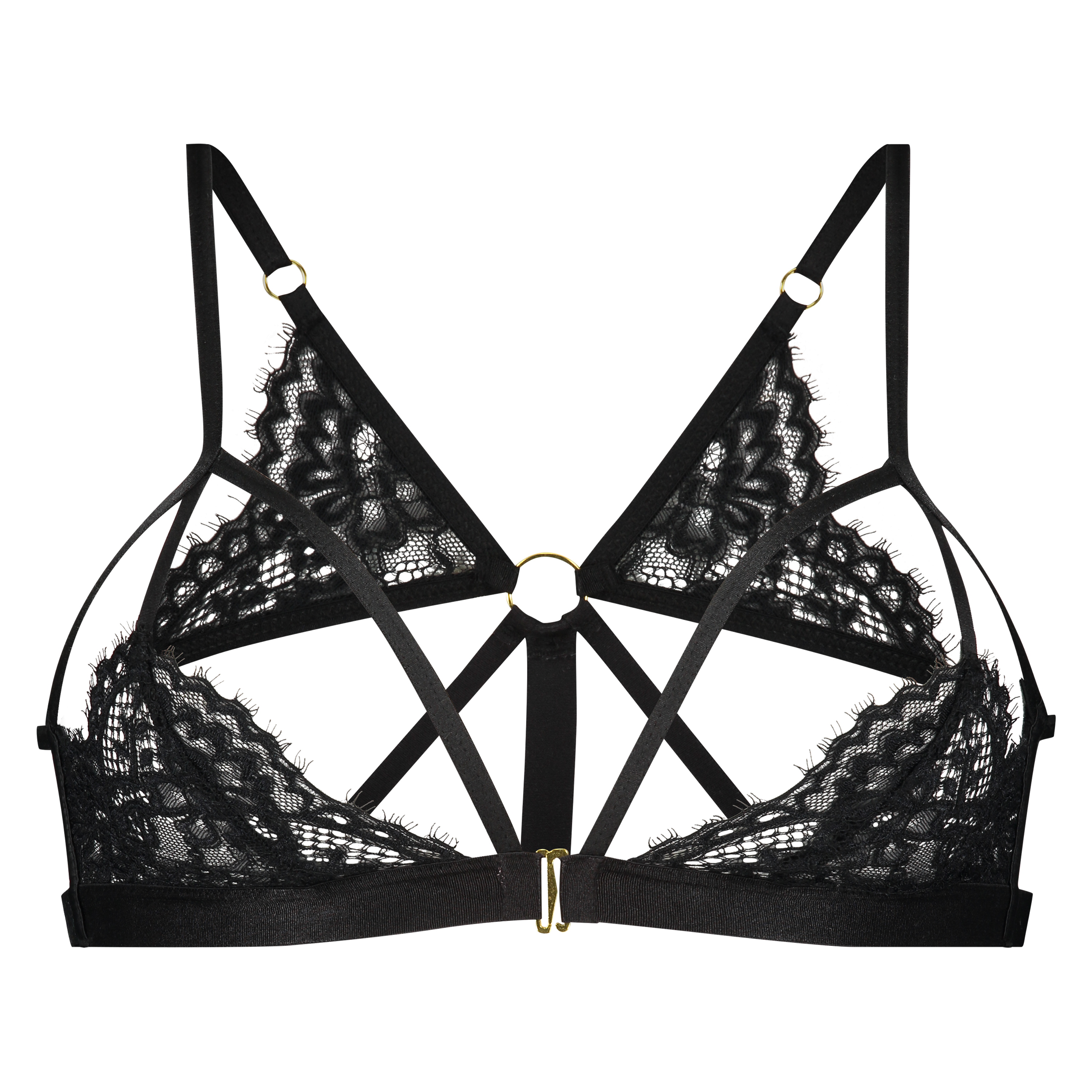 Look irresistible with this bralette made completely from lace. The strapping details give it a sexy look. Combine with the matching knickers for a complete sexy look. From our Private collection.