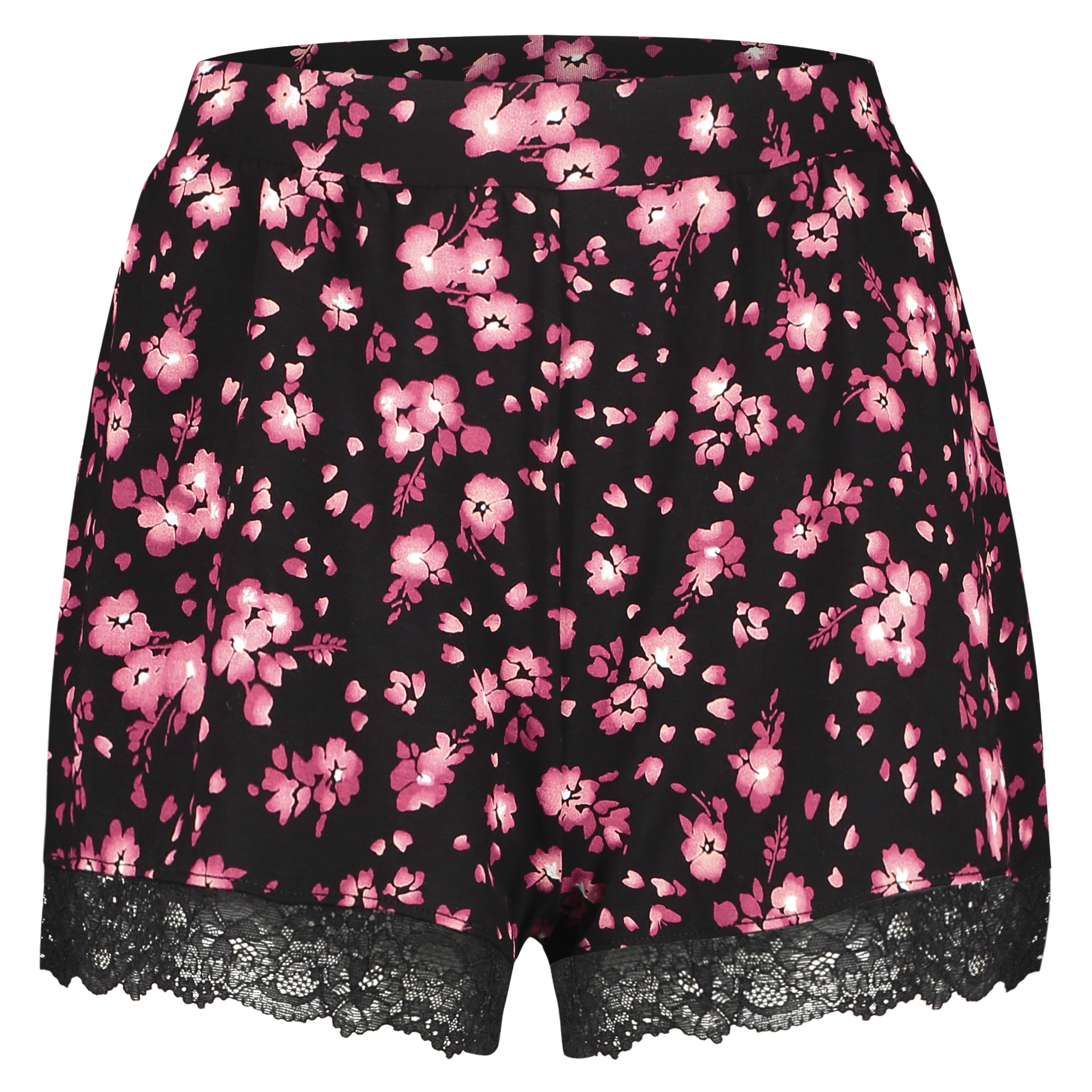 These shorts are perfect to wear in bed! The lower part is finished with a lace edge and the print completes it. Combine with a beautiful top from the collection!