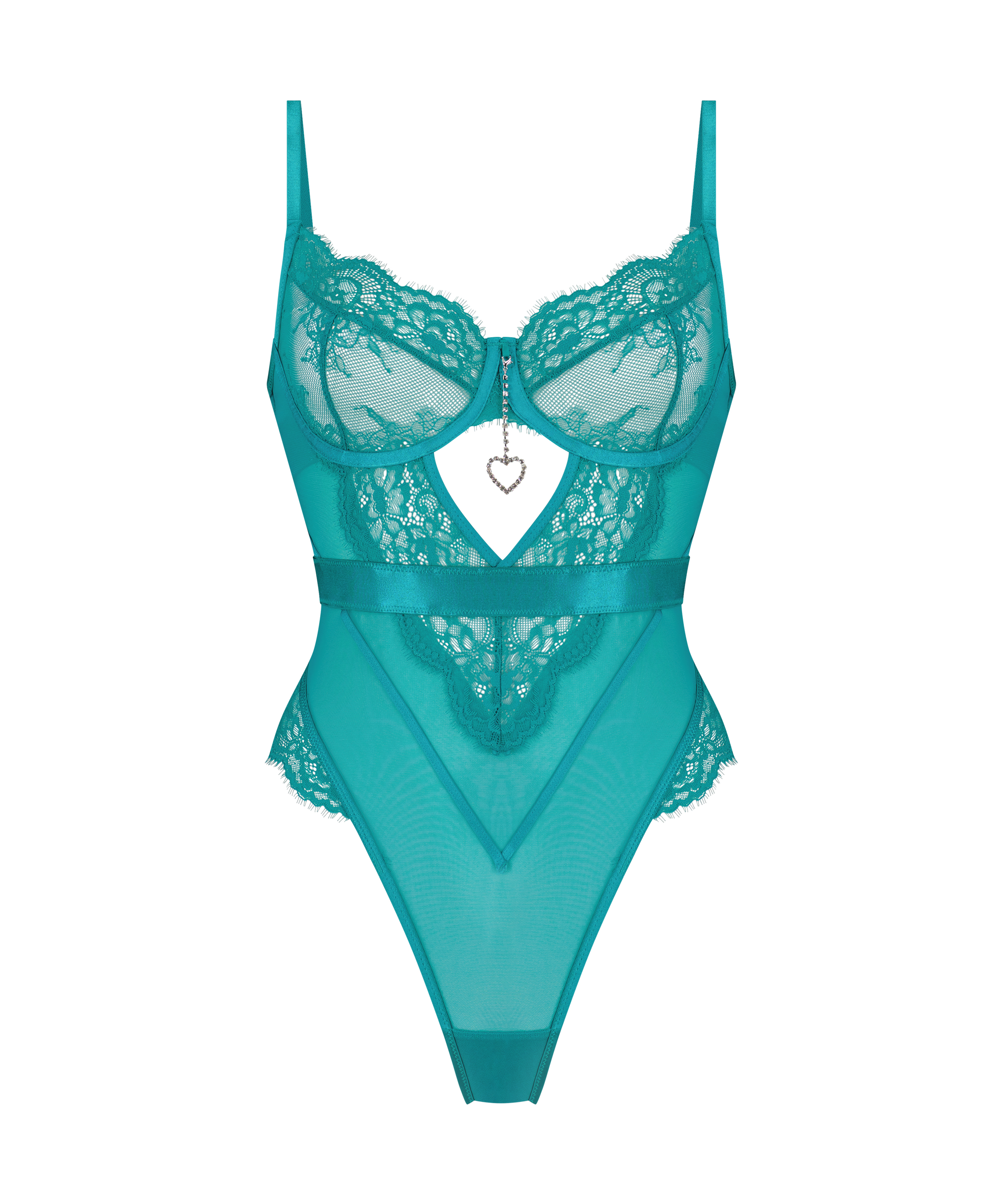 Stand out in this beautiful body! Your curves are shown off to perfection in this stunning body! The cups are comfortable and non-padded, with a decorative pendant in between. Combine with a beautiful kimono for a complete look.