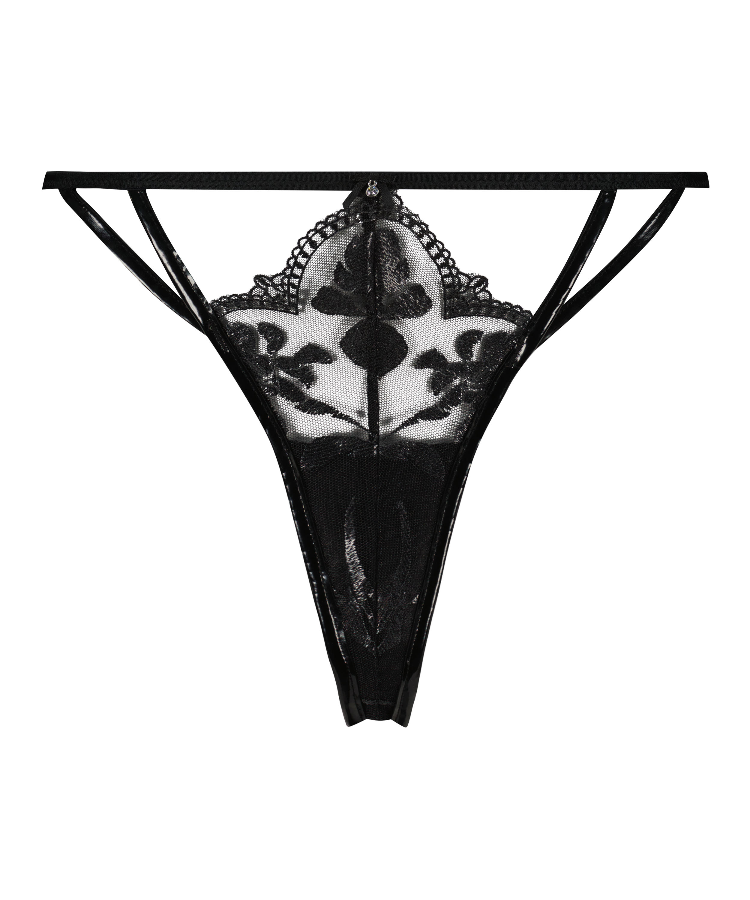 Complete your provocative outfit with this sexy thong! This thong has cut-out details and is made of beautiful lace. It's decorated with a cute little bow on the front. Pair with the matching items. Part of our Private collection.