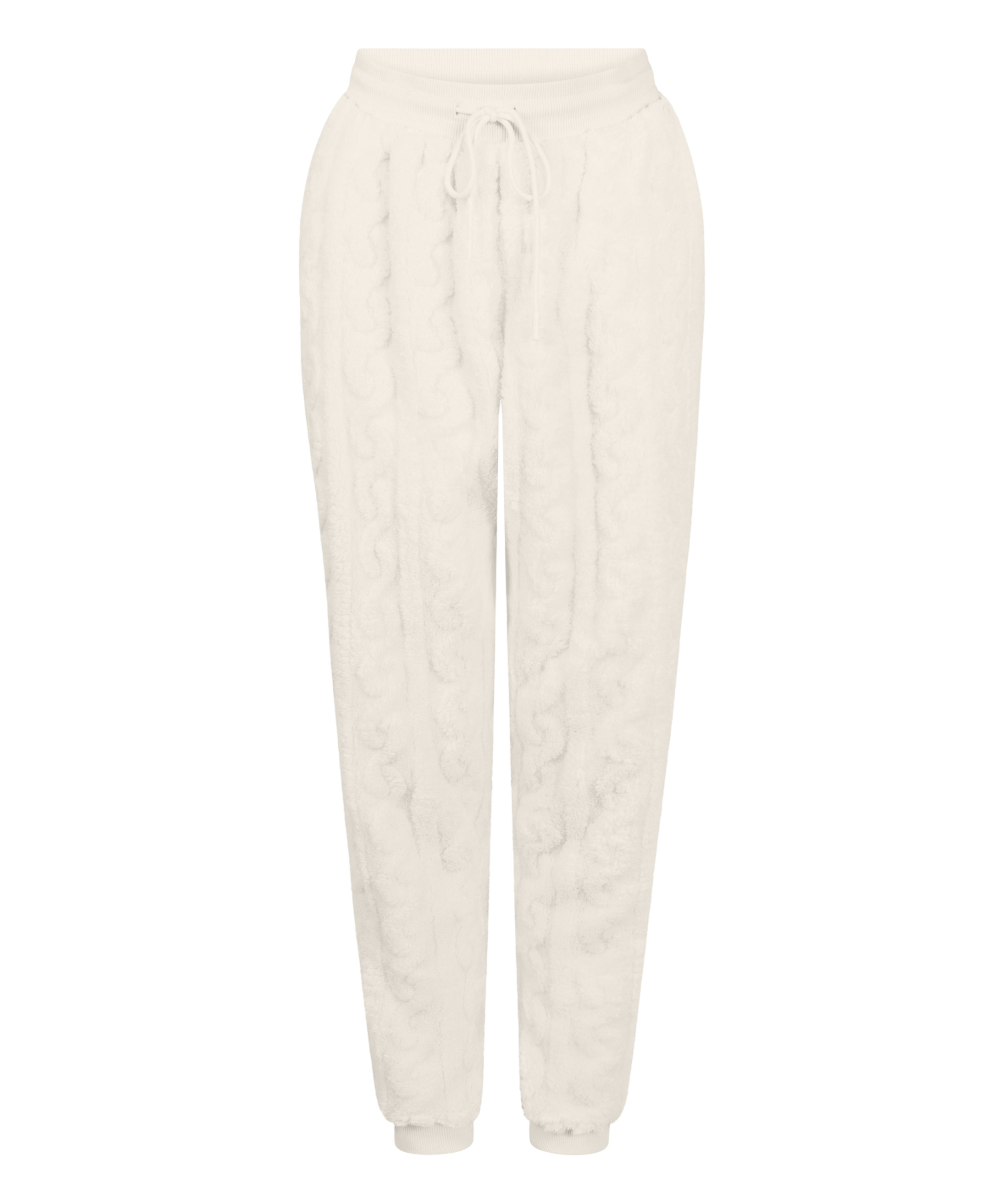 Complete your cozy look with these cable fleece pants, designed to pair perfectly with the matching sweater. Featuring a textured cable pattern that mimics classic knitwear, these pants are made from ultra-soft fleece for warmth and comfort. The relaxed fit and adjustable tie closure at the waist ensure a personalized fit, making them ideal for lounging, layering, or gifting.