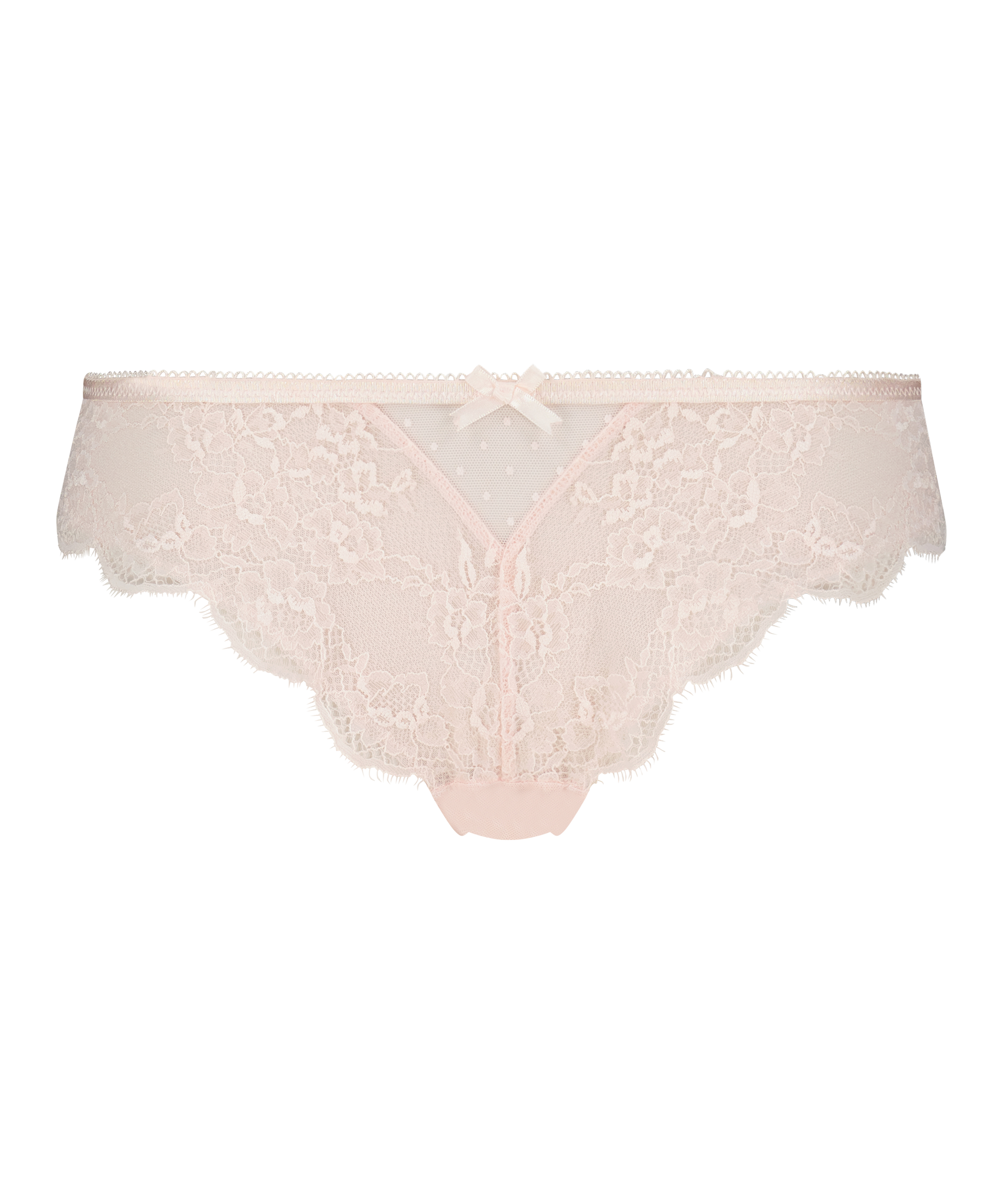 Look radiant in these beautiful Brazilian knickers! It's made from lace and mesh and has a cute little bow. Combine with matching items for a complete look!