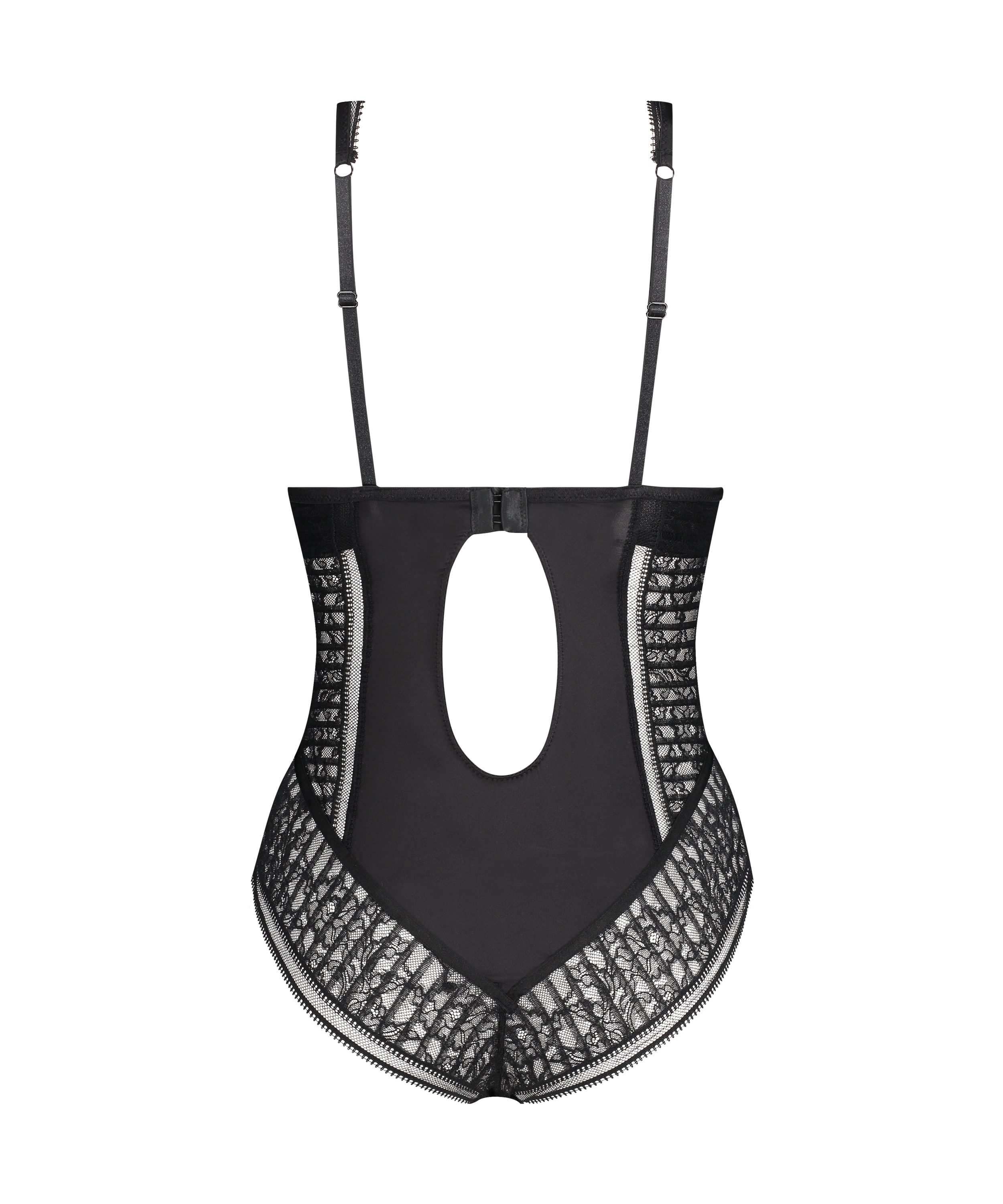 Feel very feminine in this body featuring a combination of semi-transparent fabric and lace. The press-stud fastening at the crotch makes this body easy to put on and take off. What more could you want? Part of the I AM Danielle collection.