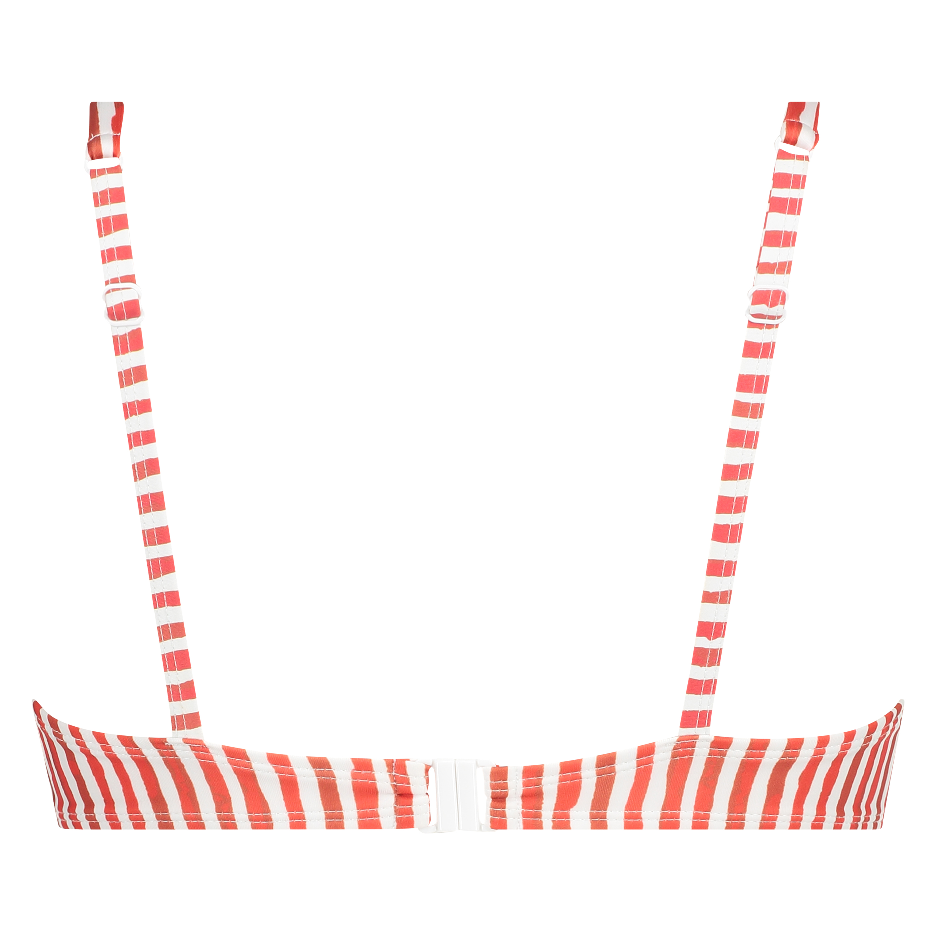 You'll stand out on the beach in this trendy bikini top! The cheerful striped print is perfect for the summer. The top is finished with a button on the front. Combine the top with the matching bottoms for a complete set! The outer material is made of 88% recycled Polyester.