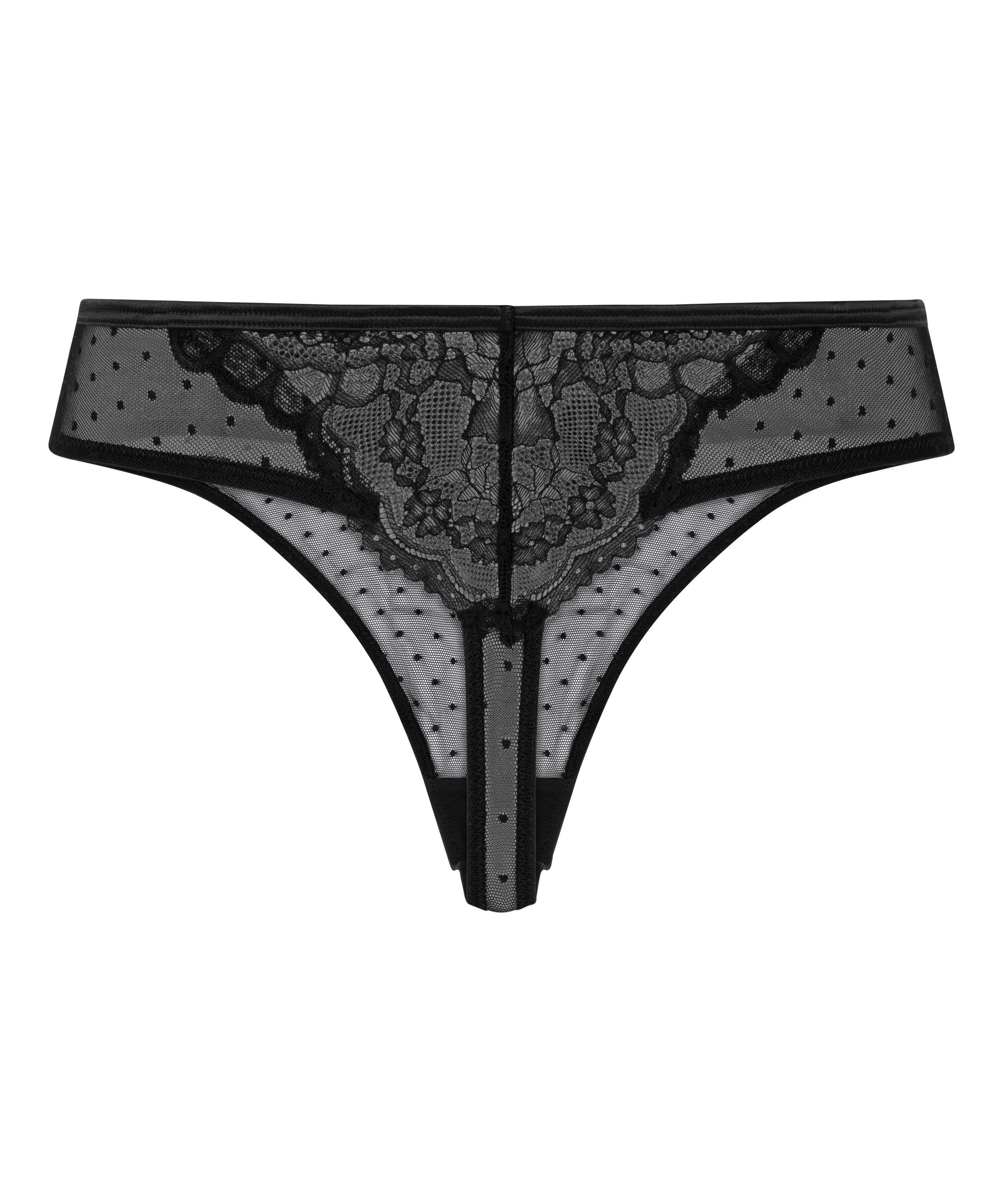 Add a touch of elegance to your lingerie drawer with our Juliette thong. Featuring mesh with a dot pattern and lace details in the front and back. Designed for comfort and style, combine with a matching bra for a complete look.