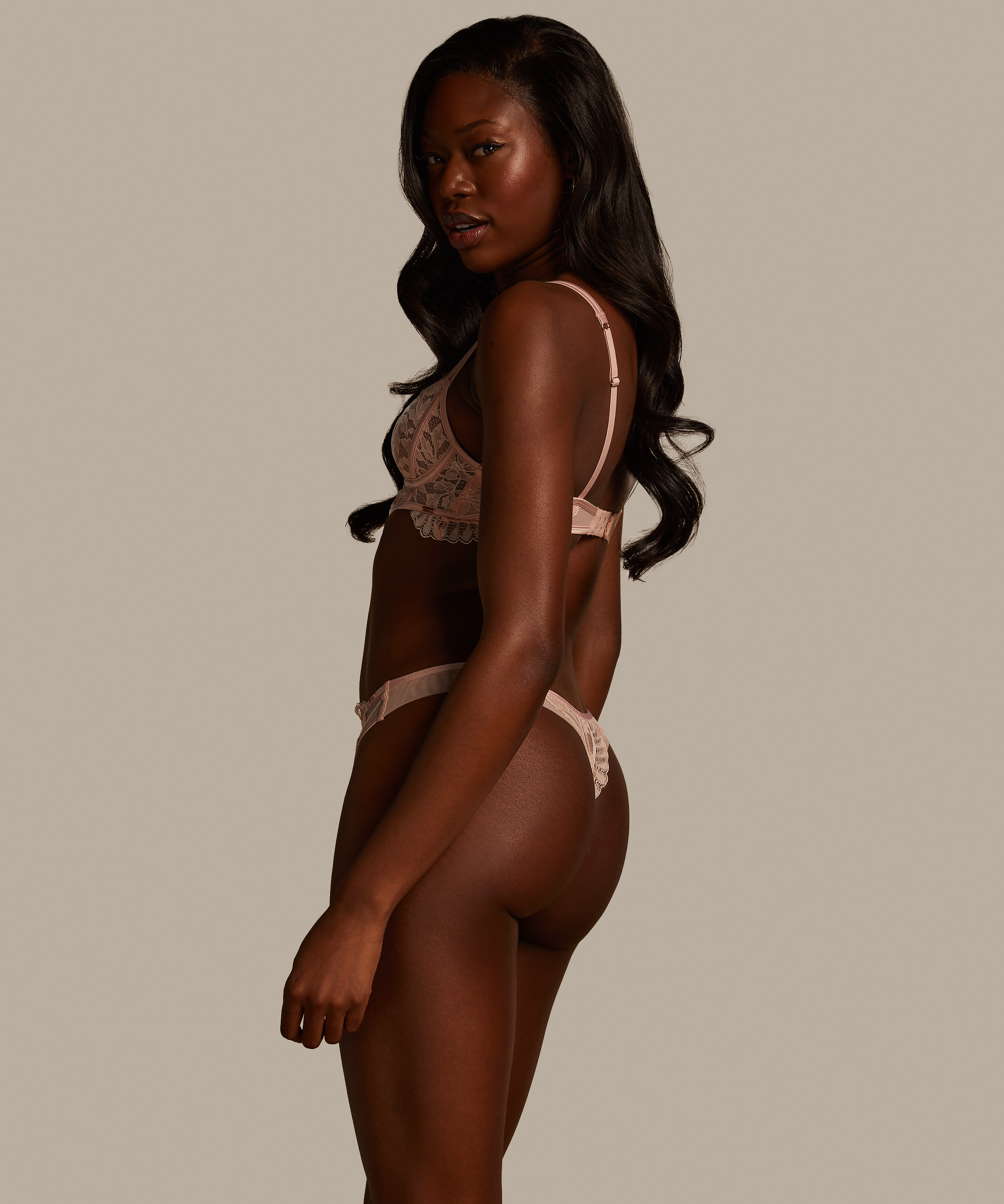 This thong is so sexy! This thong has lace and mesh details which creates a semi-transparent look. It's finished off with cute details. Pair with the matching bralette. Part of our Noir collection.