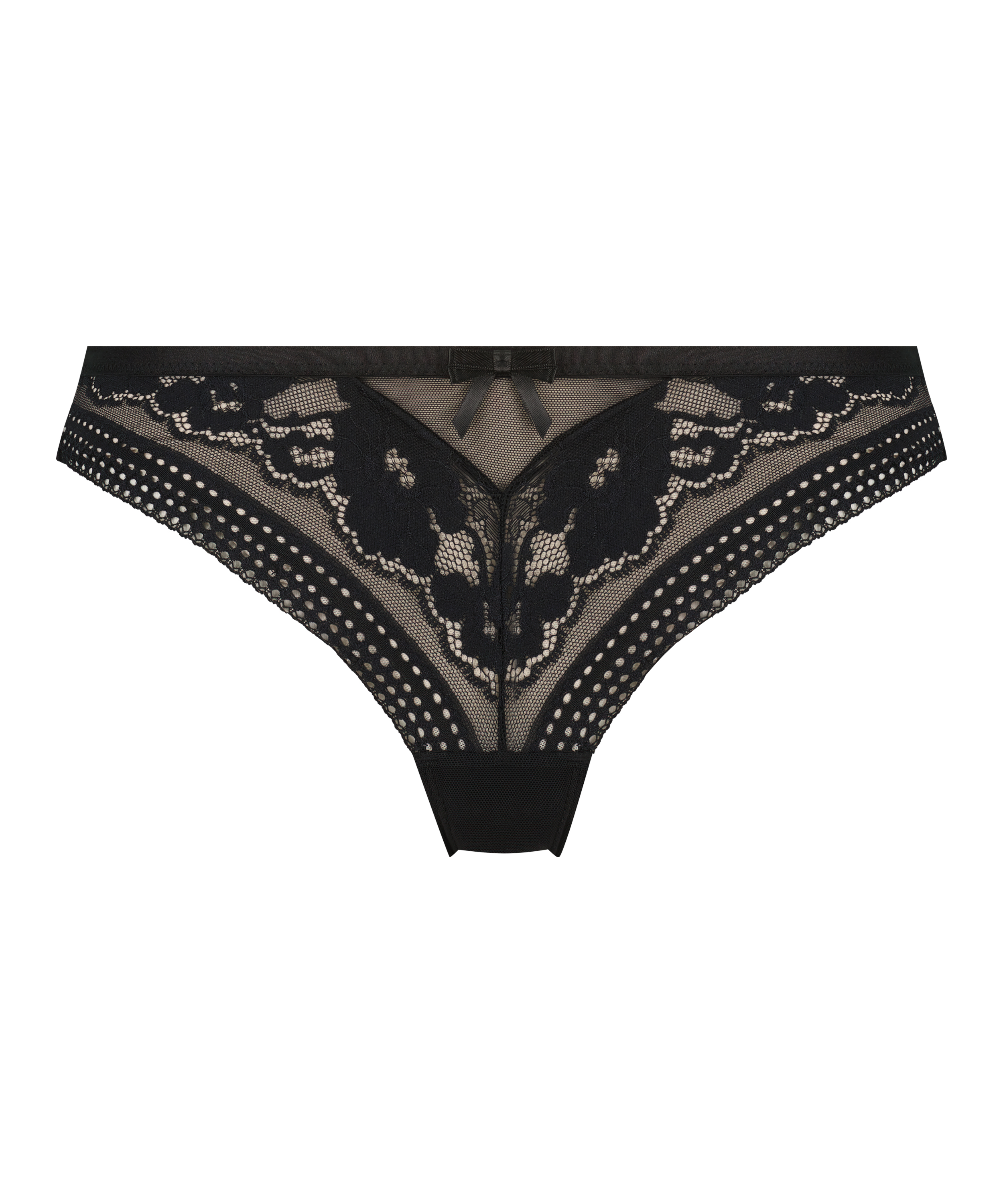 Feel sexy in this beautiful Brazilian! It has lace and mesh details. There are graceful loops on the edges. Combine this Brazilian with the matching bra to complete your set!