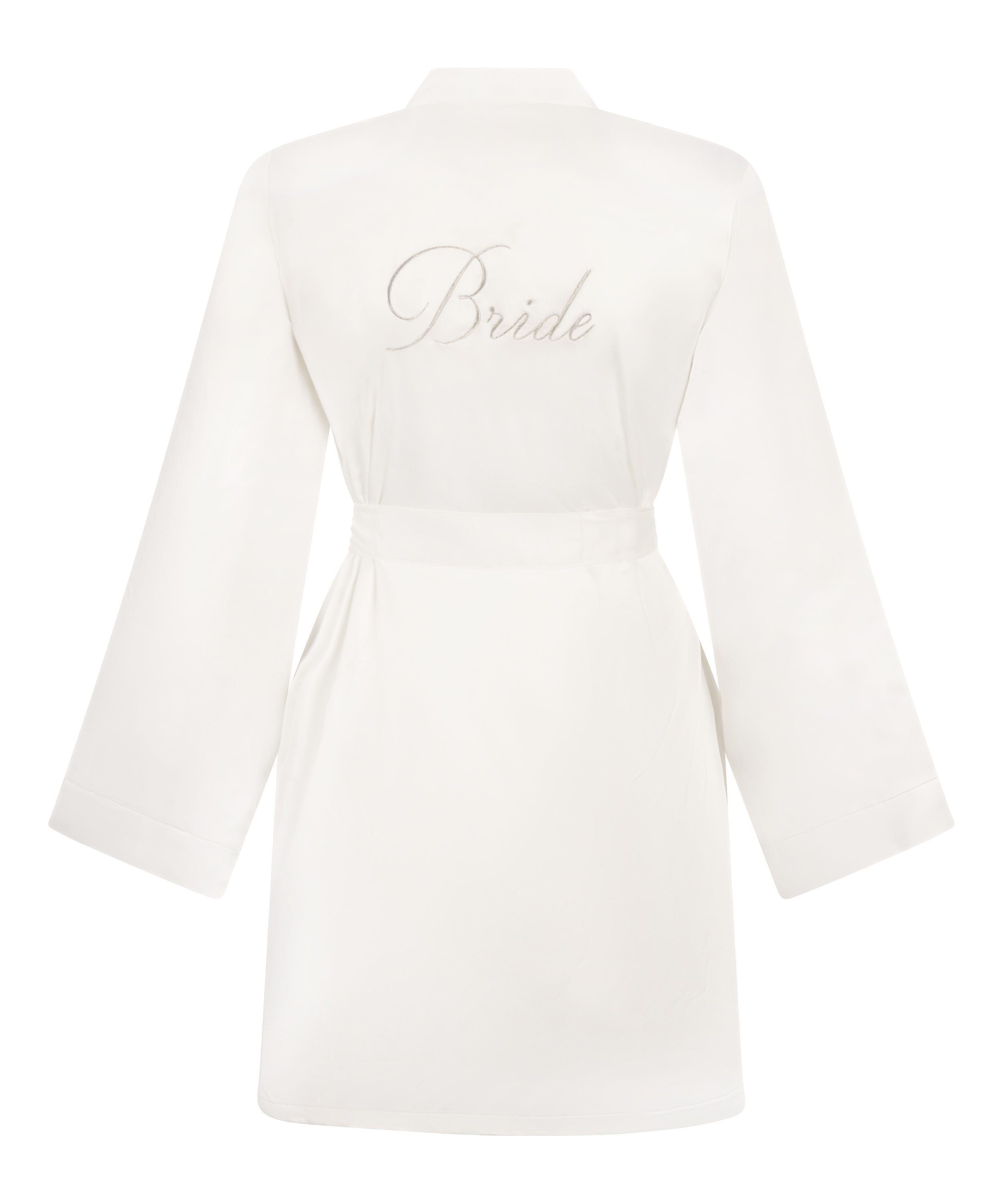 Wrap yourself in elegance with this bridal kimono. Designed with a luxurious satin look and feel that drapes beautifully over the body. Perfect for the wedding morning or honeymoon moments. The real rie closure at the waist allows for a flattering, adjustable fit. Combine with you favorite lingerie set for a complete look.