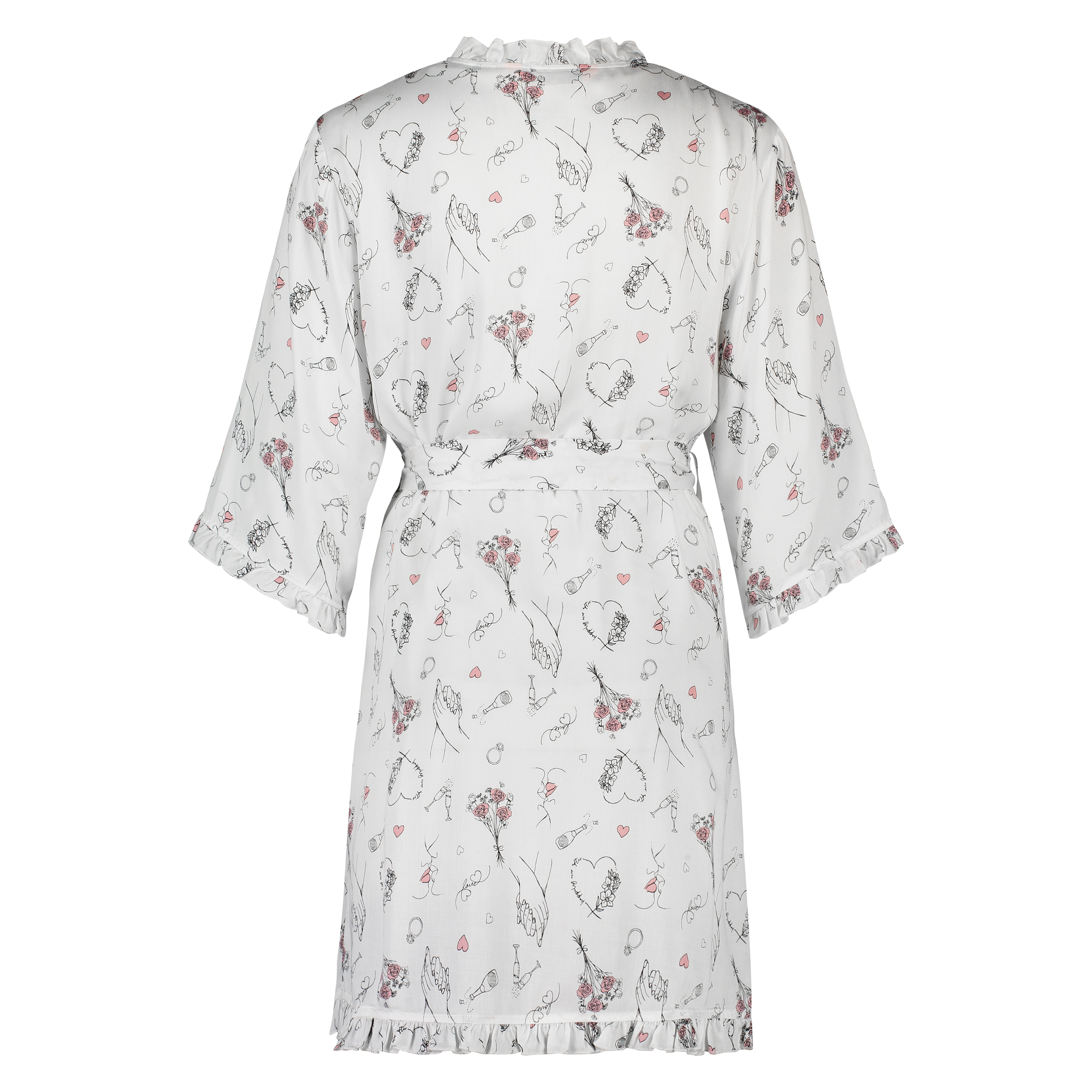 This kimono is perfect for all brides to be! The kimono has a lovely print! It is finished with ruffles.