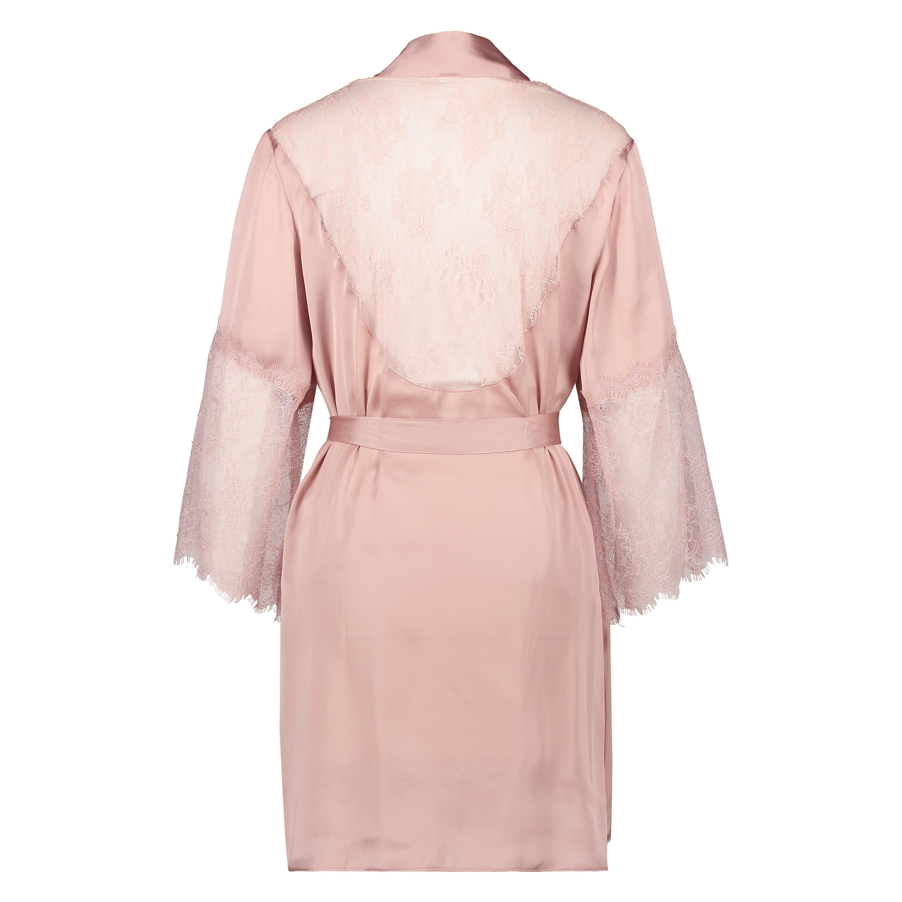 This elegant kimono is a stunning addition to your wardrobe! It is made of satin, giving it an extremely luxurious look and feel. The back and cuffs are covered with lace. Combine with a beautiful lingerie set from the Noir collection!