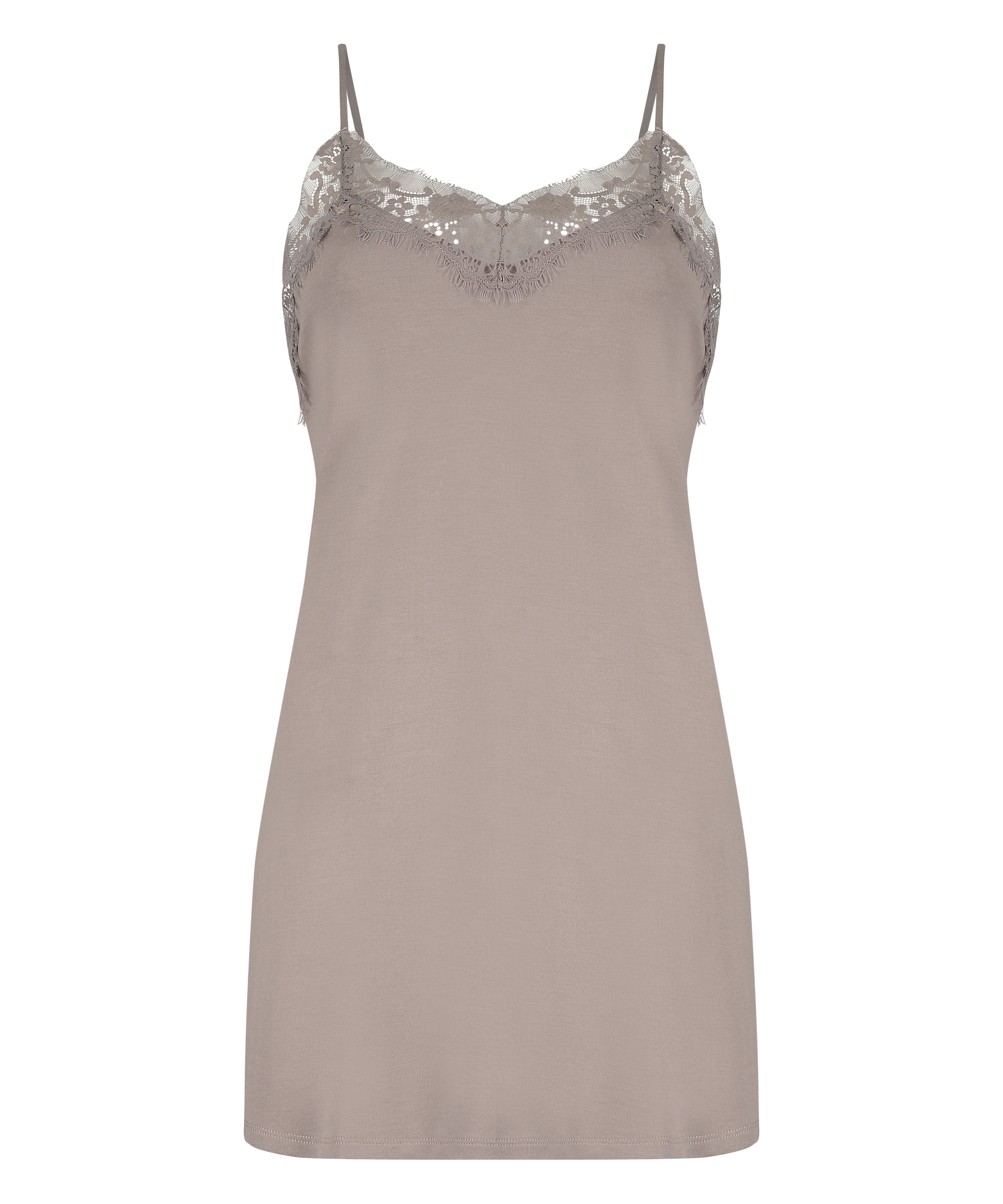 Get comfortable with this nightgown! Made with a very soft and flowy material for comfort. Along with elegant lace details. Accessorize with other items!