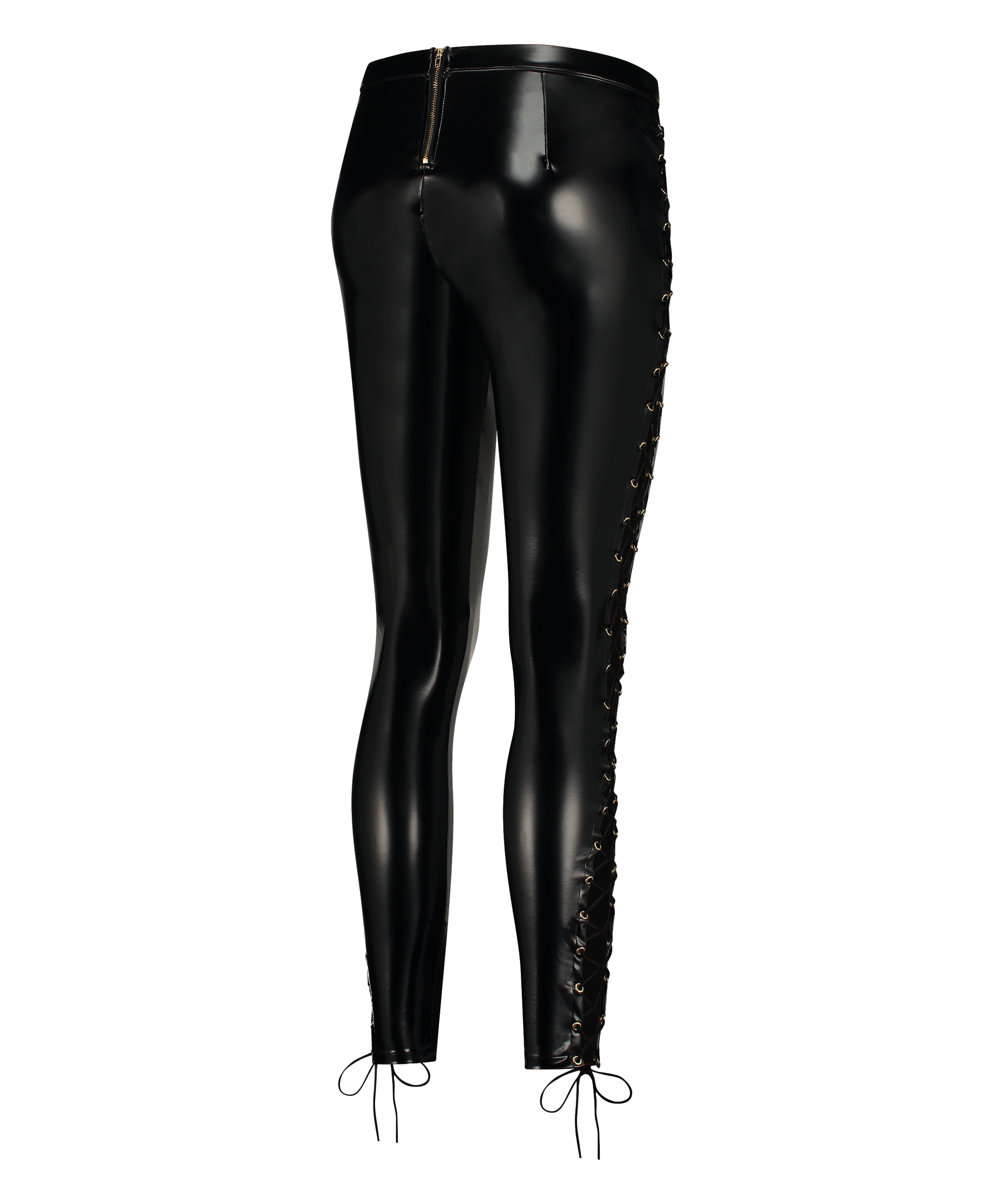 Make your look extra sexy with these leggings! The leggings are made from fake leather and have cut-outs with lace-up details at the sides. Combine with a matching bra and knickers from the Private collection!