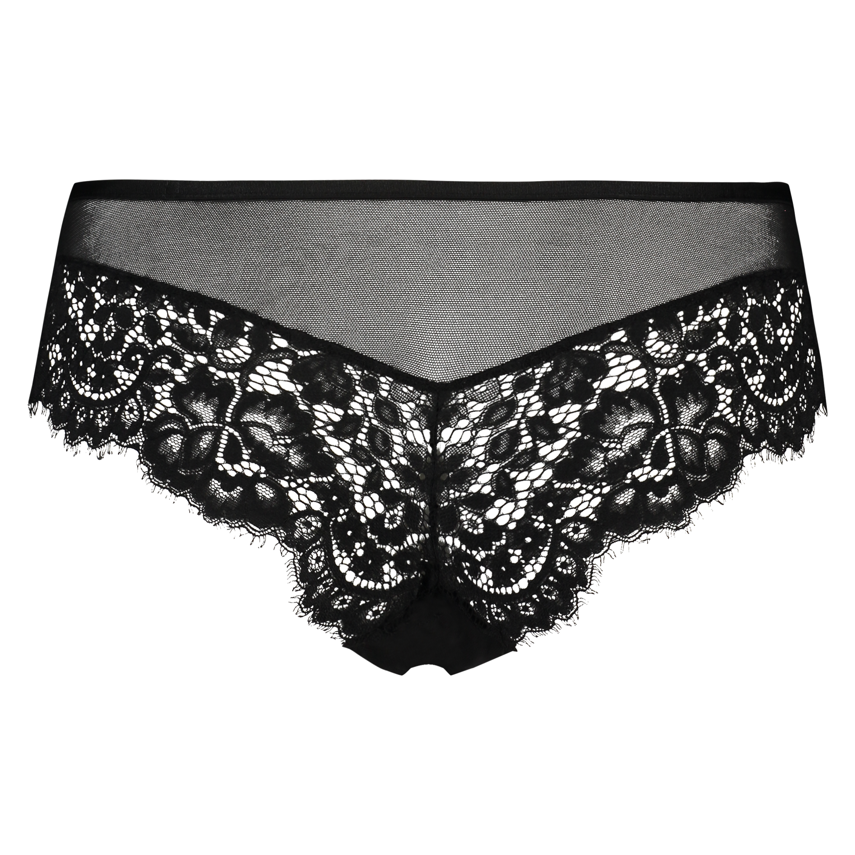 We want more lace! You'll feel extremely sexy in these Brazilian knickers with strapping details and small bow in the middle. For a complete set, combine with a matching bra.