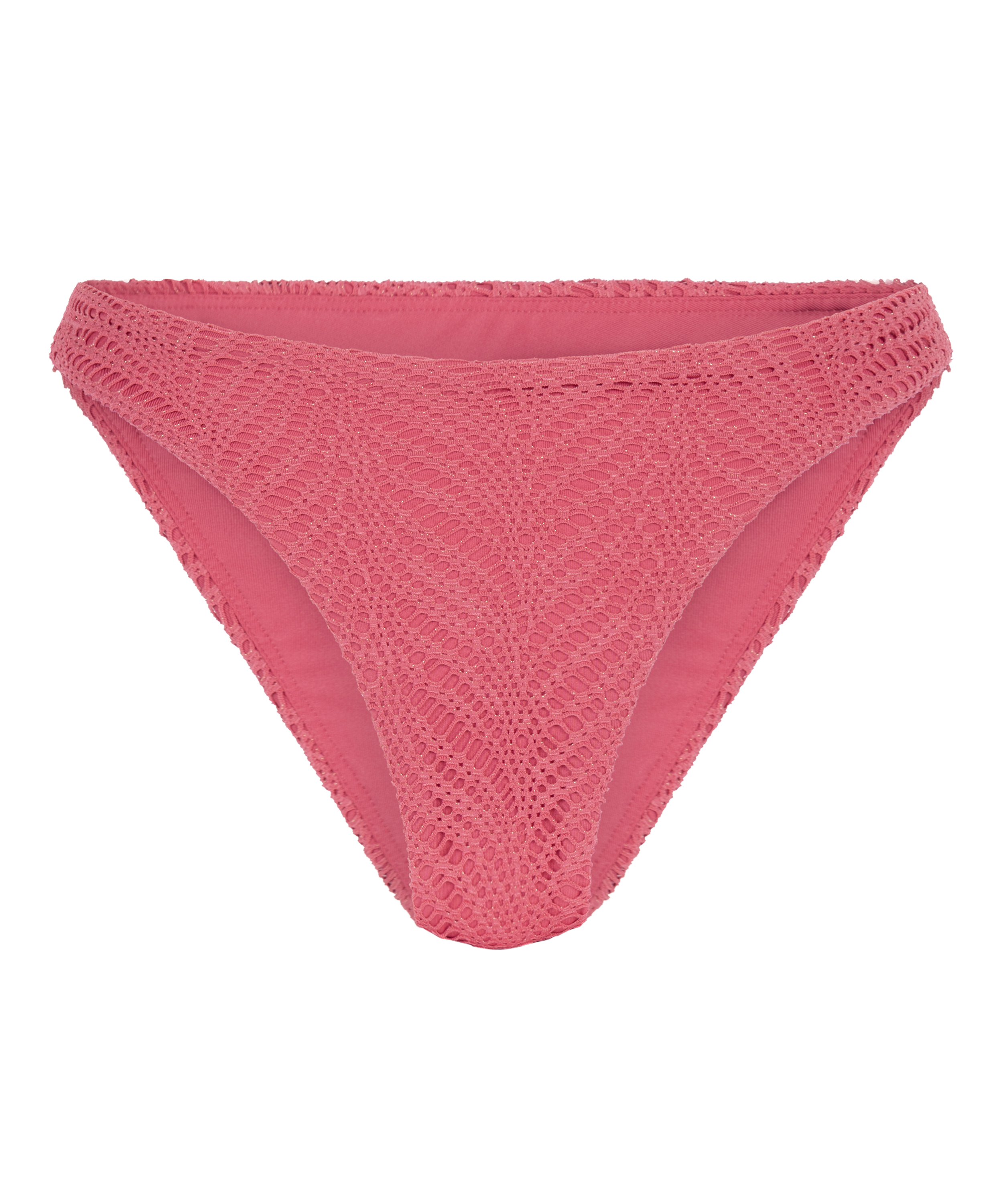 Elevate your swimwear collection with this high-leg bikini bottom featuring a crochet finish. The flattering cut enhances your silhouette while ensuring a comfortable fit. Pair it with the matching top for a chic and effortless beach look!