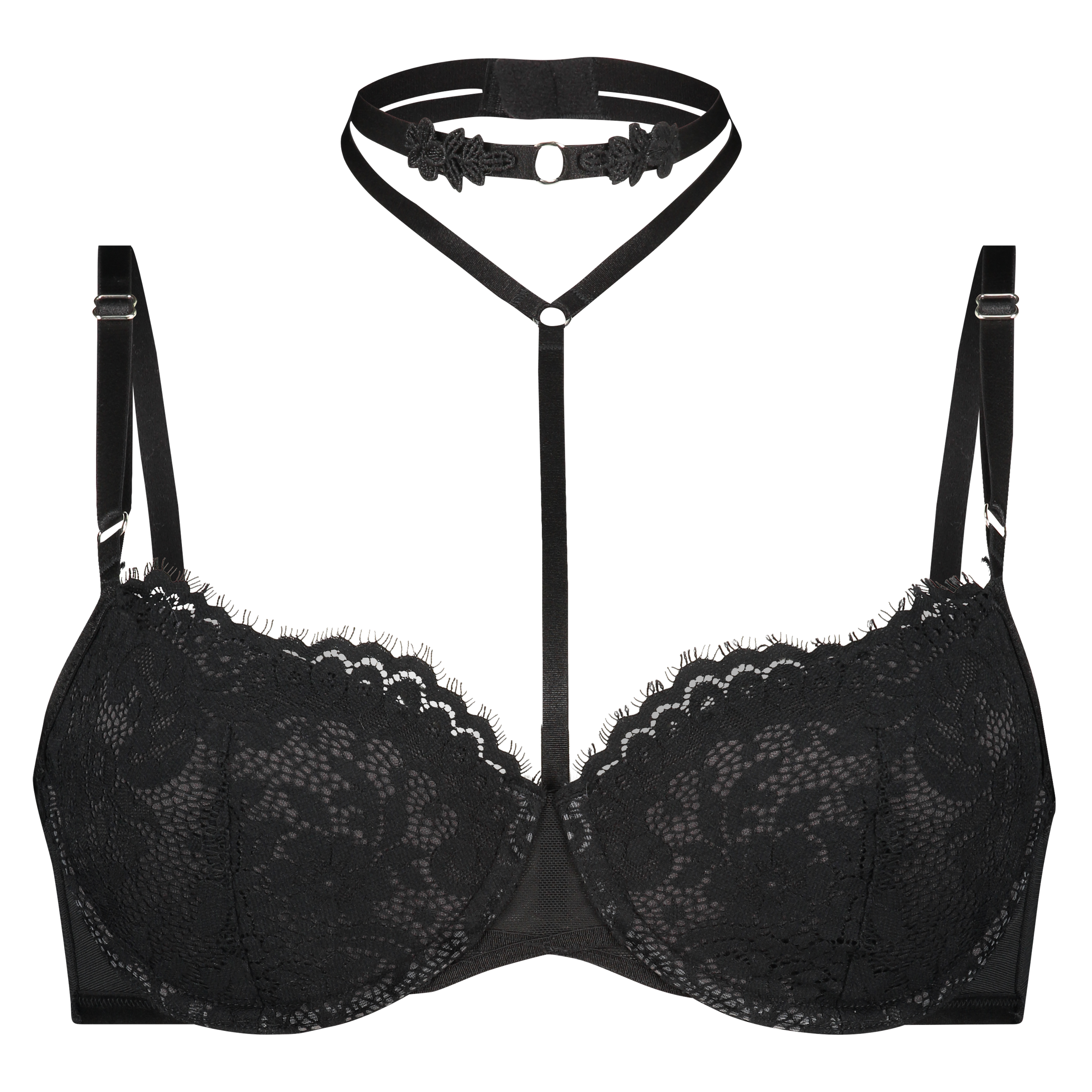 You'll feel really sexy in this bra! The cups are completely covered with a floral-patterned lace. The removable choker is the finishing touch! Combine with matching items for a complete set.