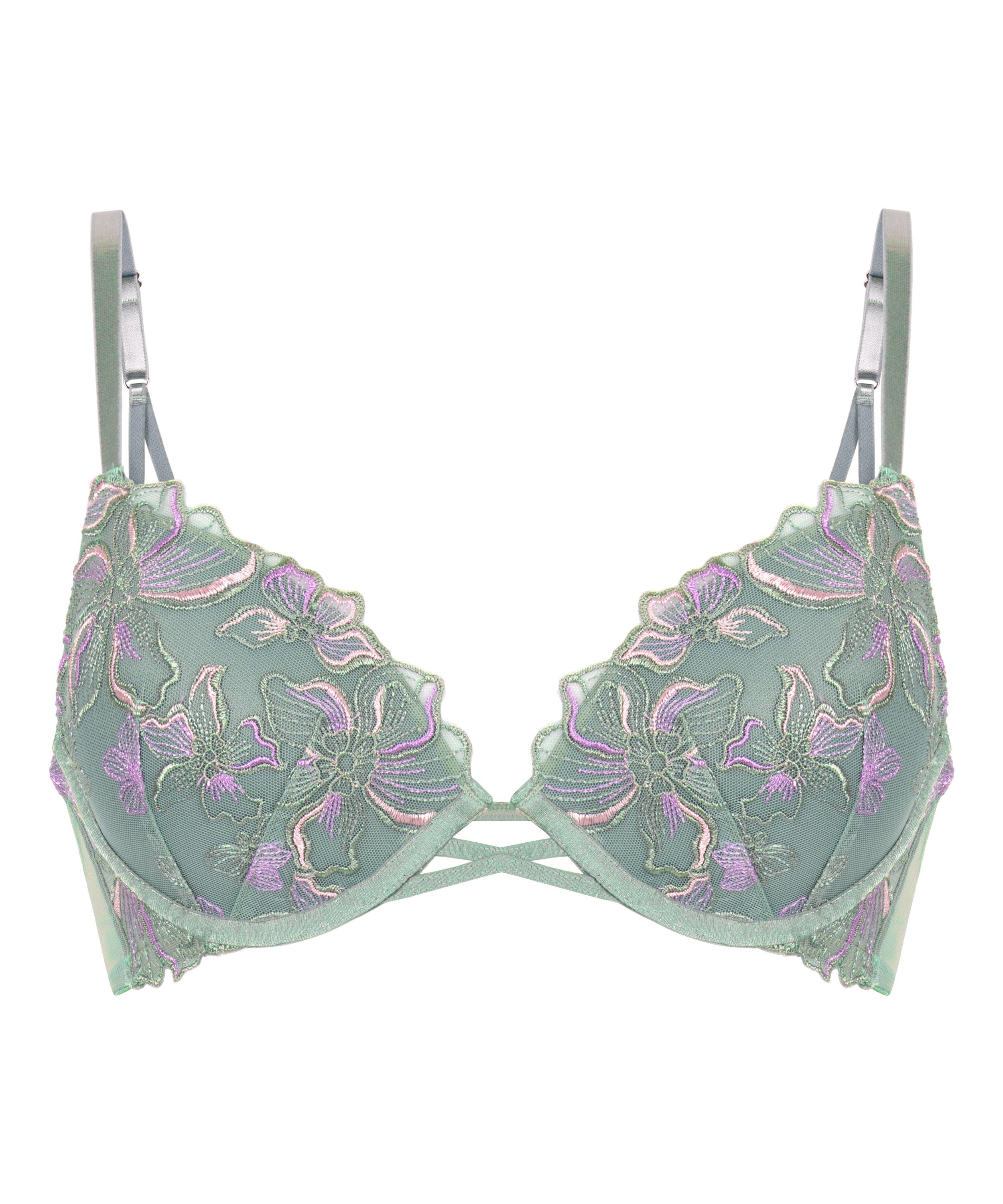 Feel confident and elegant with this beautiful Lauren bra. It's a padded bra and the mesh features embroidered flowers. The adjustable shoulder straps can be easily adjusted for the perfect fit and extra comfort. Add this elegant piece to your lingerie collection and experience its gorgeousness. Pair with matching items to complete the set.