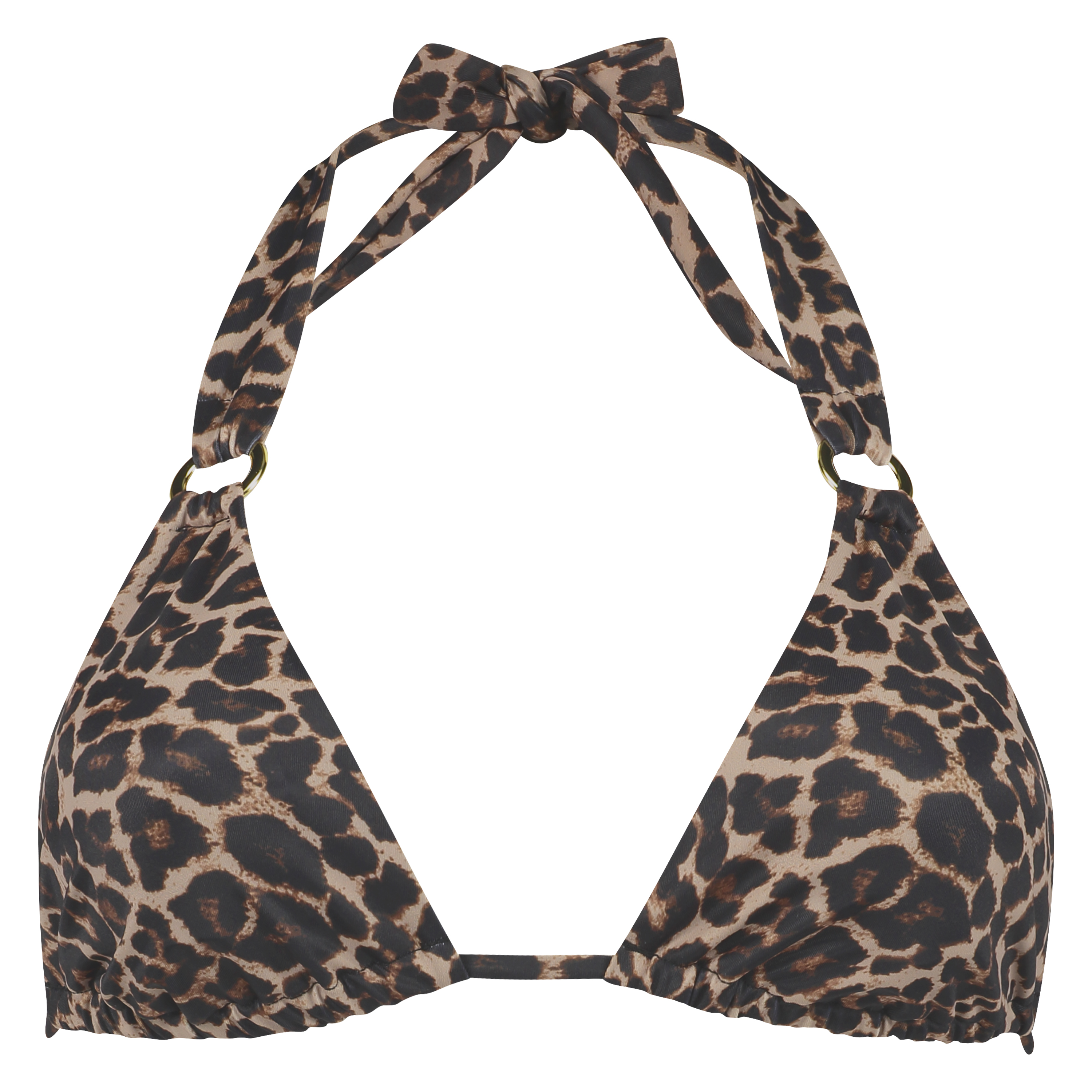 We love animal print! This bikini top is the perfect addition to your collection. The ring detailing above the cups provides the finishing touch. The top is padded and non-wired. The padding is removable. Combine with one of the matching bottoms for a complete set.