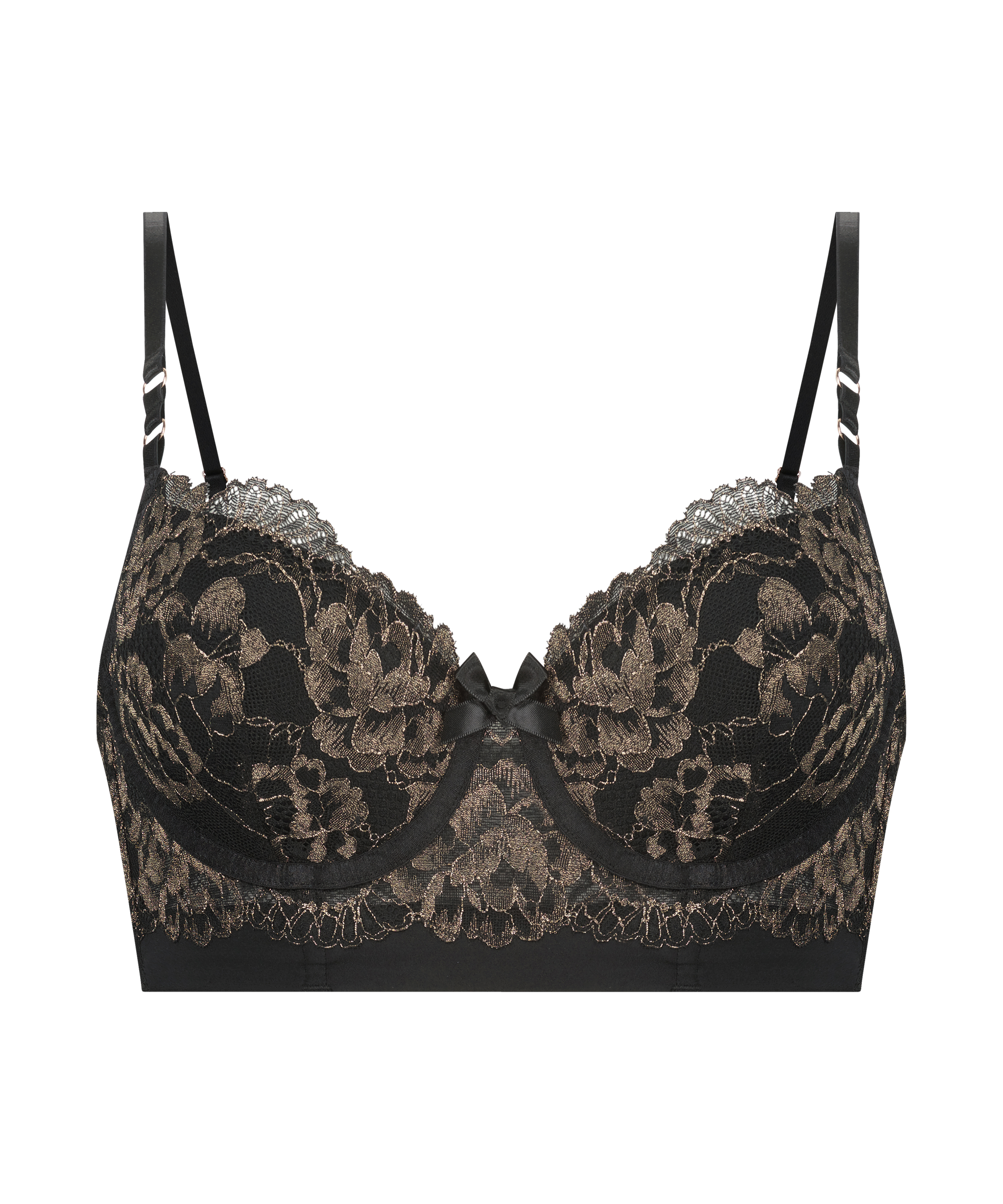 How lovely is this bra? The cups have beautiful lurex shiny lace and between the cups is a delicate bow. Combine with matching items for a complete set!