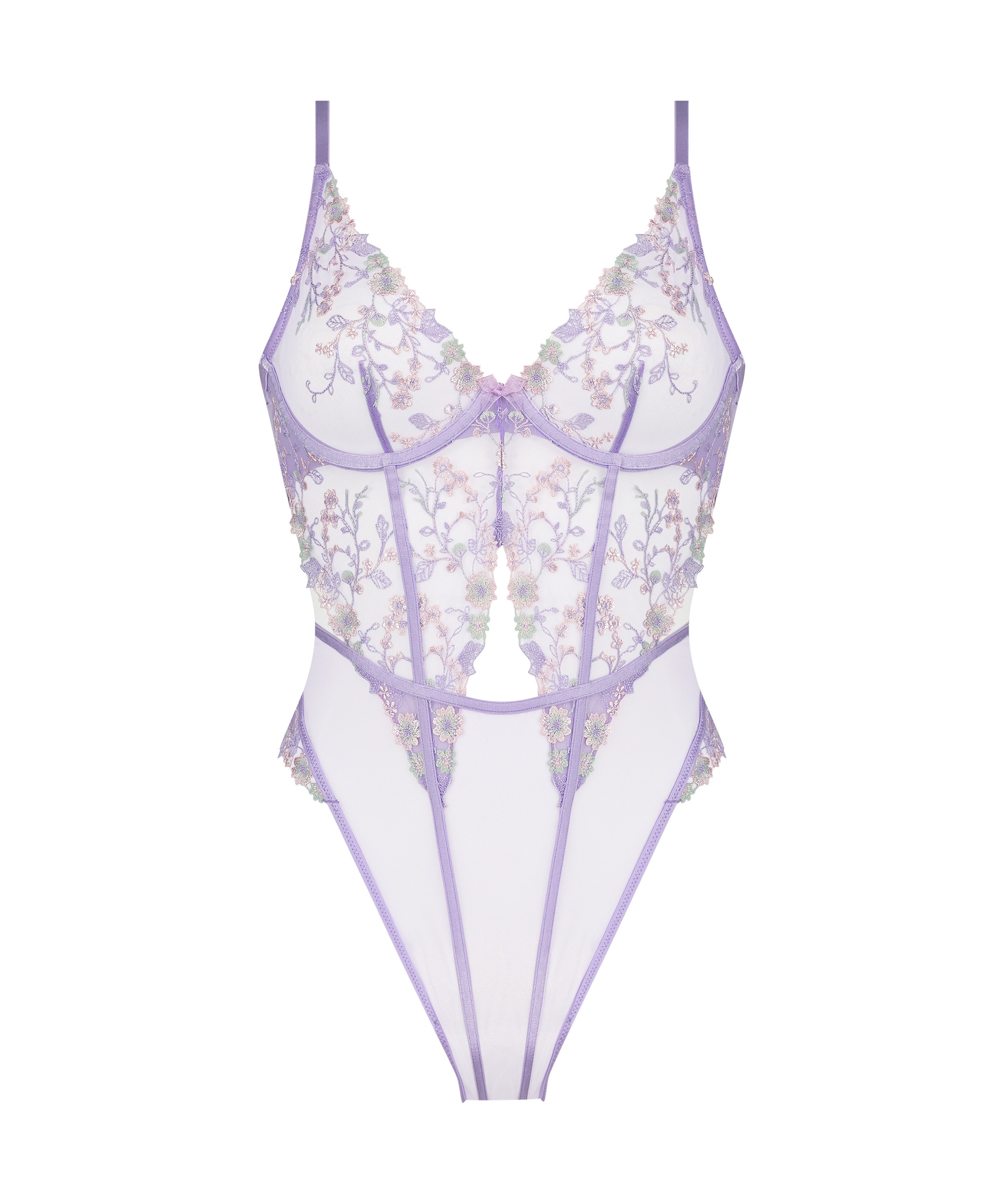 Stir up some desire with the Bella body! This beautiful piece is the perfect blend of elegance and art, with its unique floral embroidery and delicate lace fabric. The body is wired and has adjustable shoulder straps that make this piece a versatile showstopper that can be dressed up or down. The immaculate embroidery and stunning silhouette are sure to turn heads, and the overall effect is a display of playful femininity at its finest.