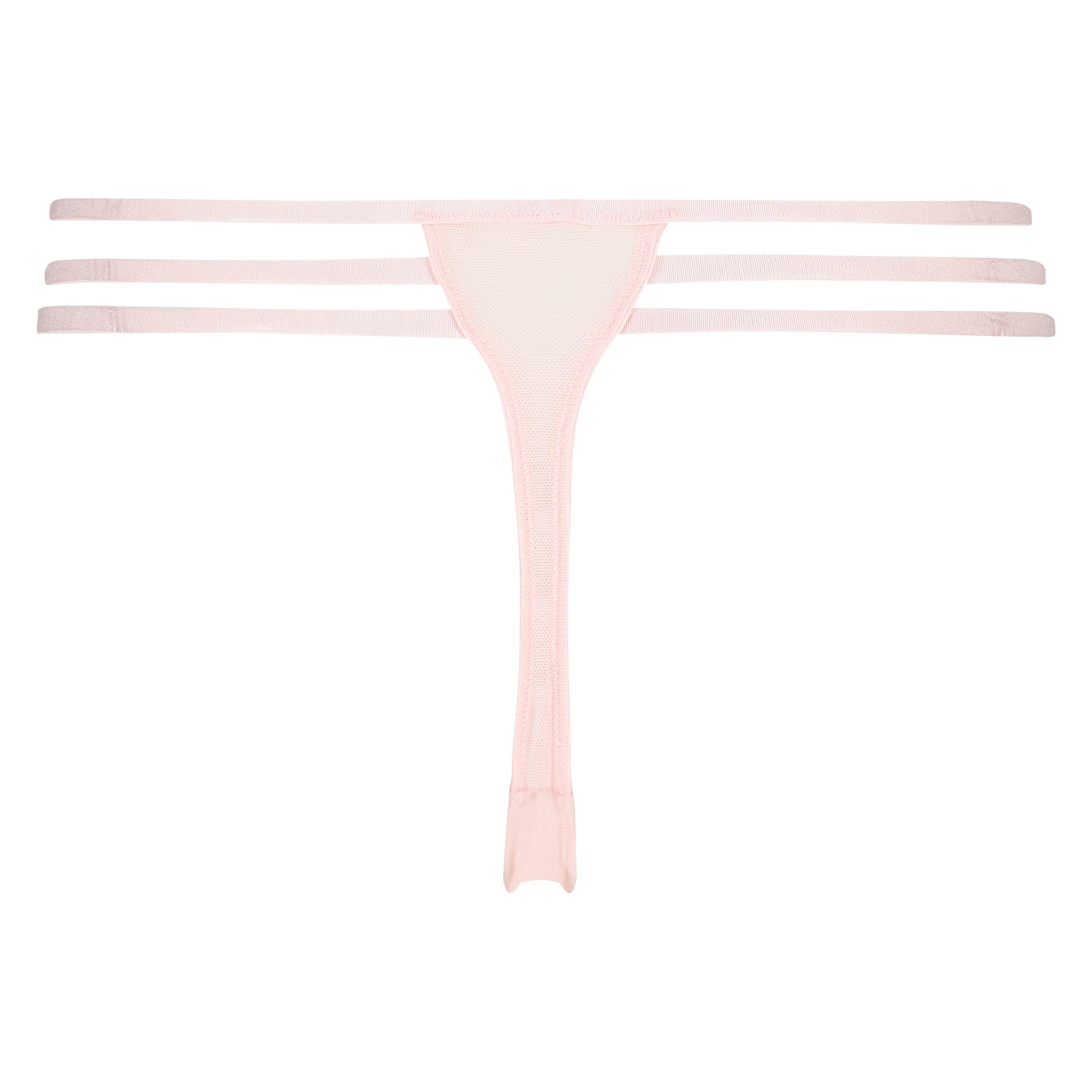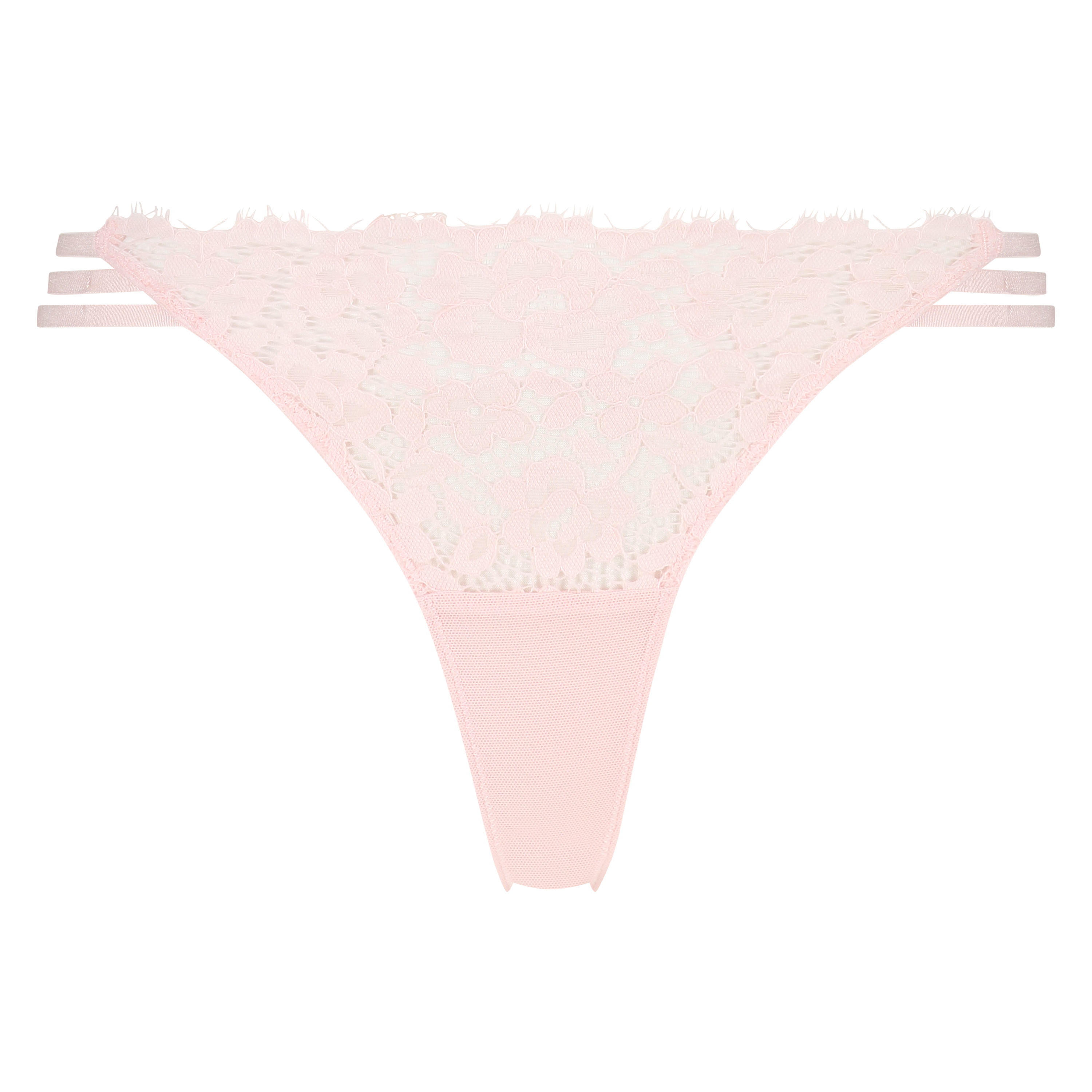 This thong has semi-transparent lace and therefore sexy. The back of mesh completes the thong. Finished with strappy details on the side. Combine with one of the matching items for a complete set!