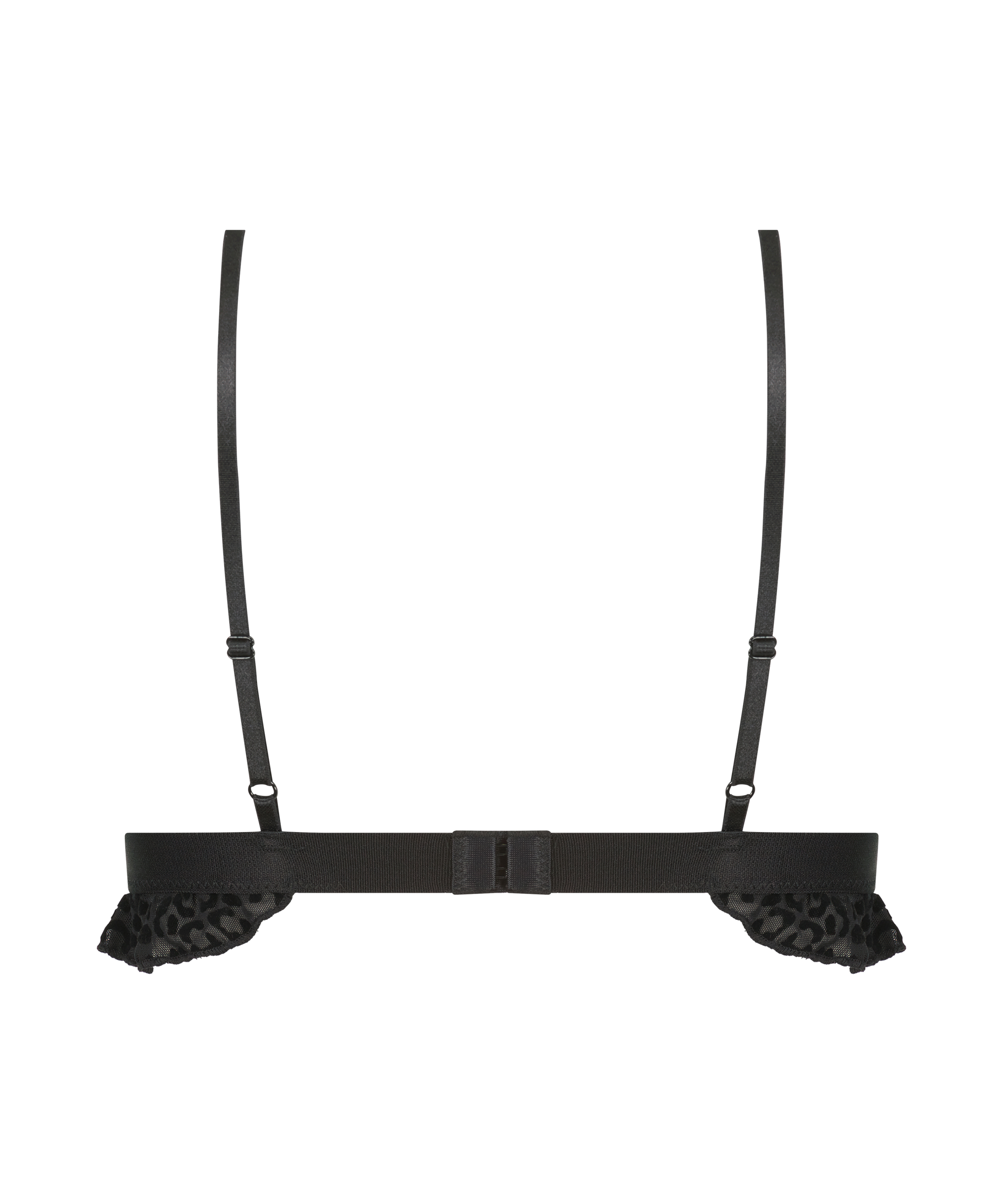 This bralette is an absolute must-have. The cute flock print, soft elastic waistband with ruffles and extra straps make this bralette totally on-trend. Wear with the matching knickers for a complete look.