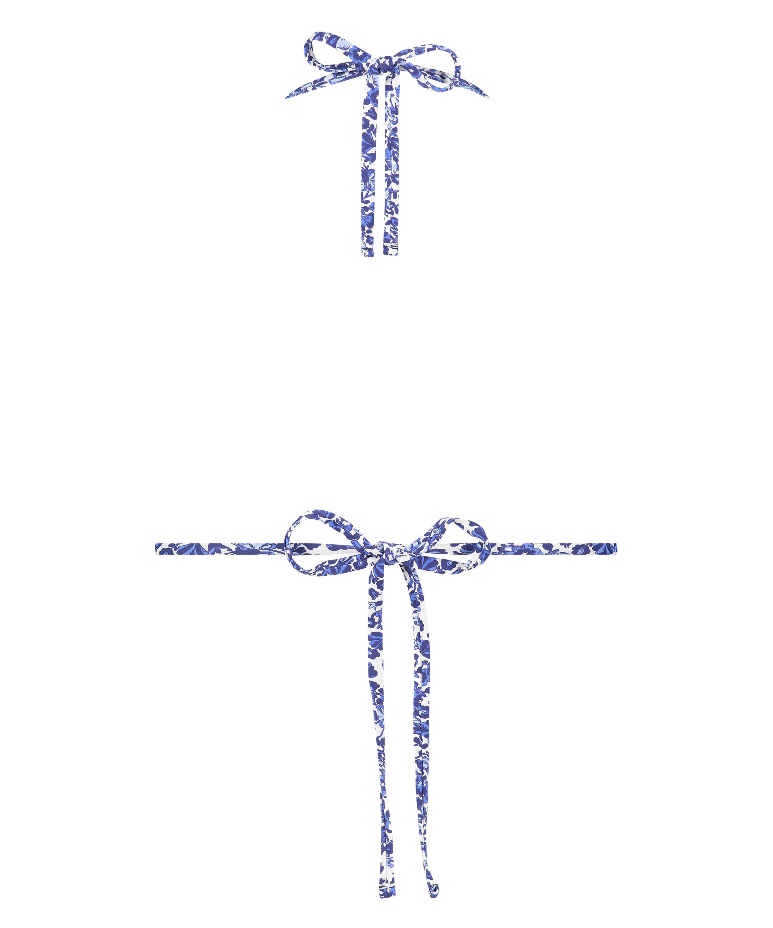 Elevate your beach style with our stunning Lobos triangle bikini top! Made from ruched fabric, decorated with delicate beads. Pair it effortlessly with the matching bikini bottoms for a look that's sure to turn heads!Our triangles come fully adjustable with halter tie neck and tie back, to suit your choice of cup coverage. However, if you want fuller coverage, try a size up.