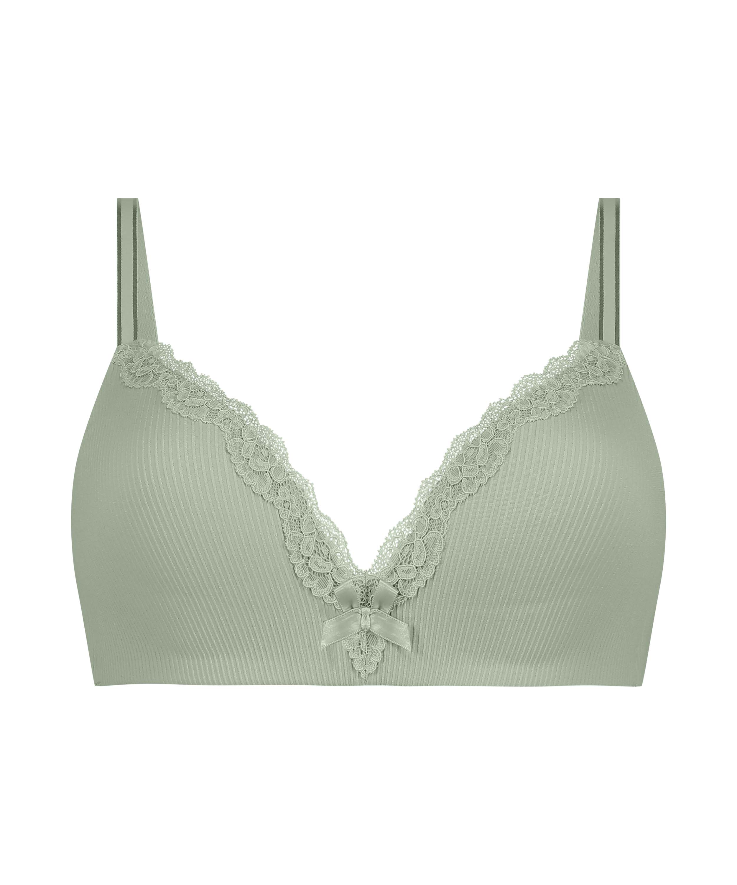 A pretty bra with gorgeous lace trimming and a pretty bow on the front. The bra is padded and non-wired. Combine with matching knickers.