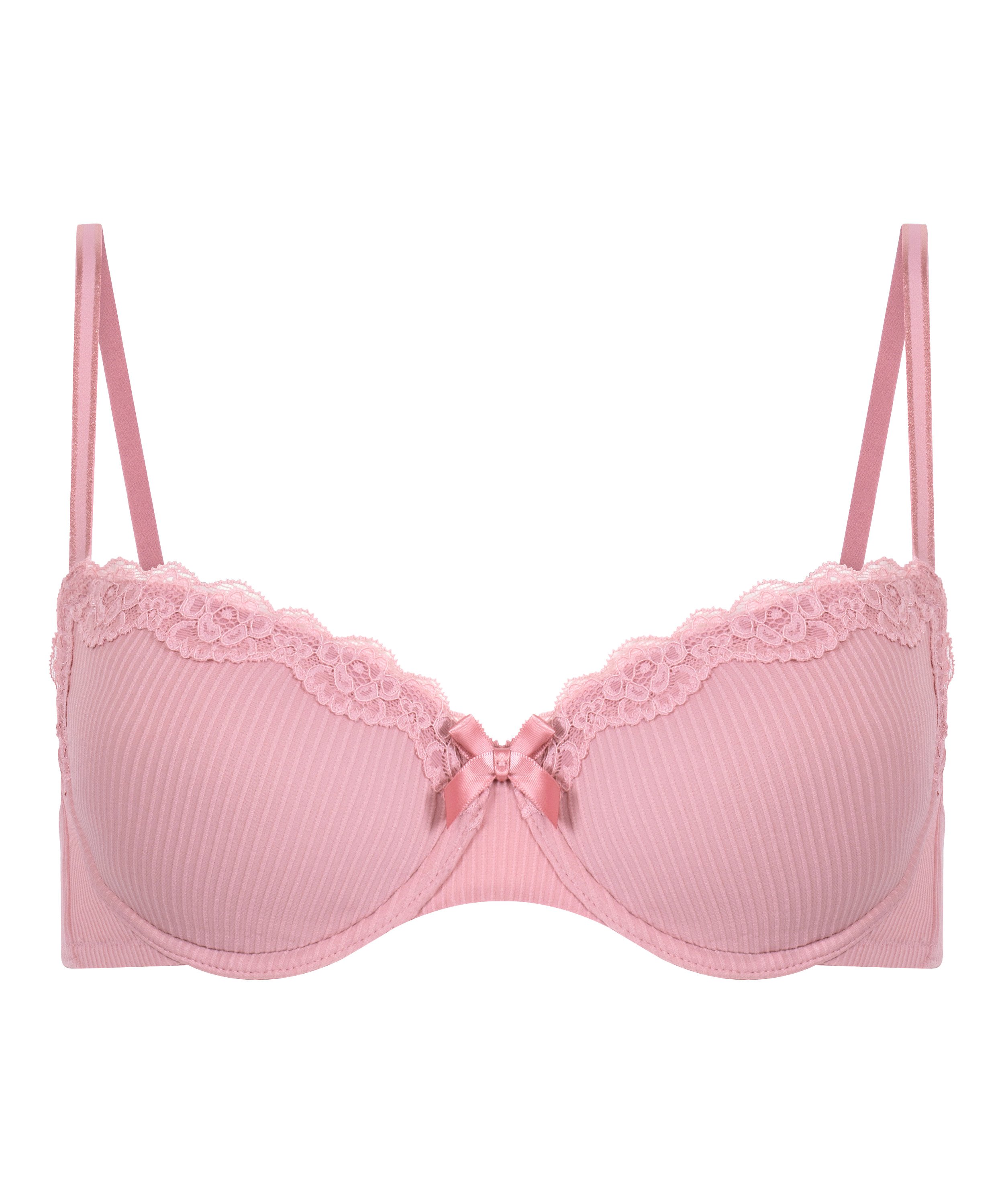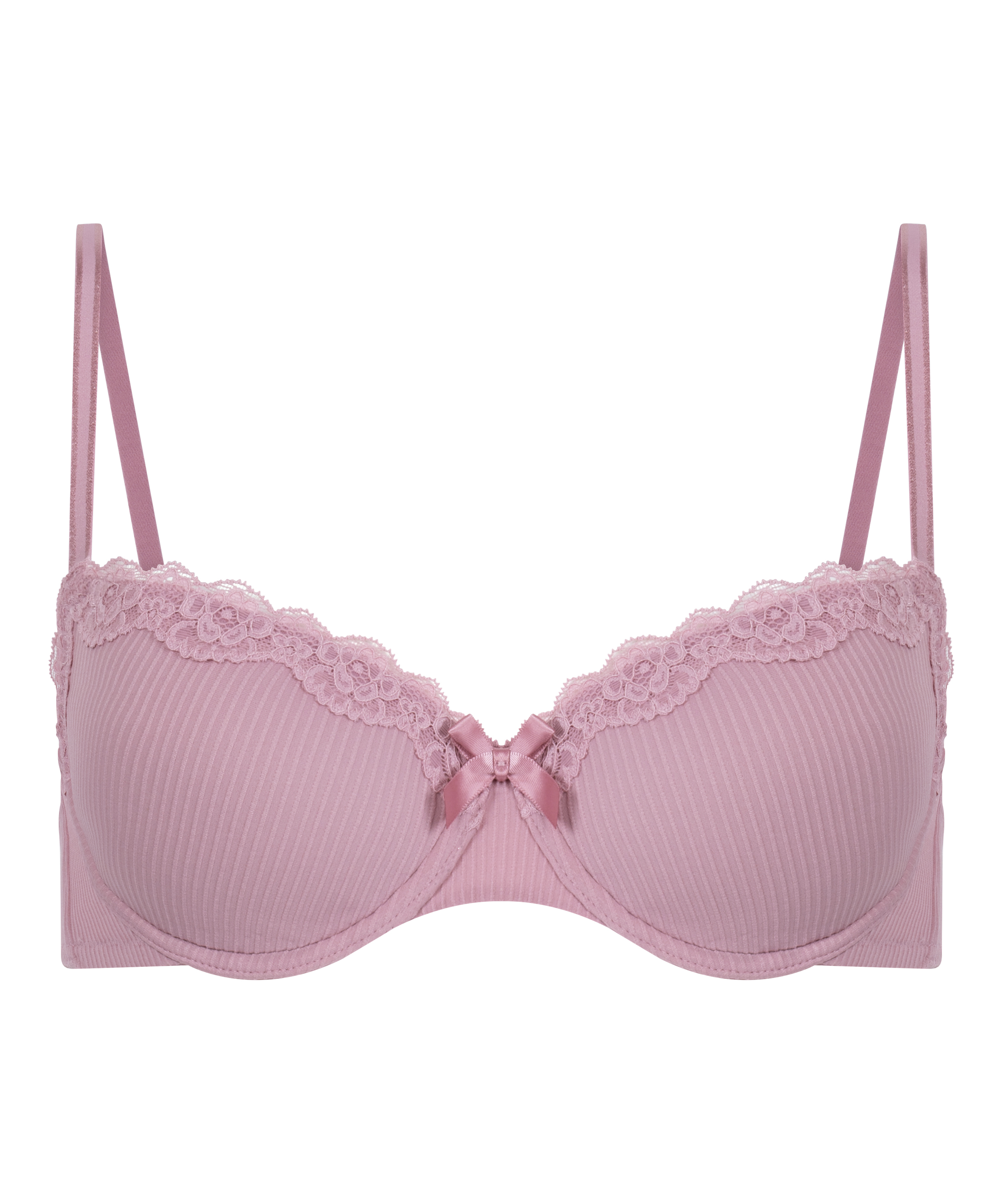 This padded underwired bra is finished with lace details on the top of the cups. Between the cups is a small bow for an extra sexy look. Mix with the matching items!