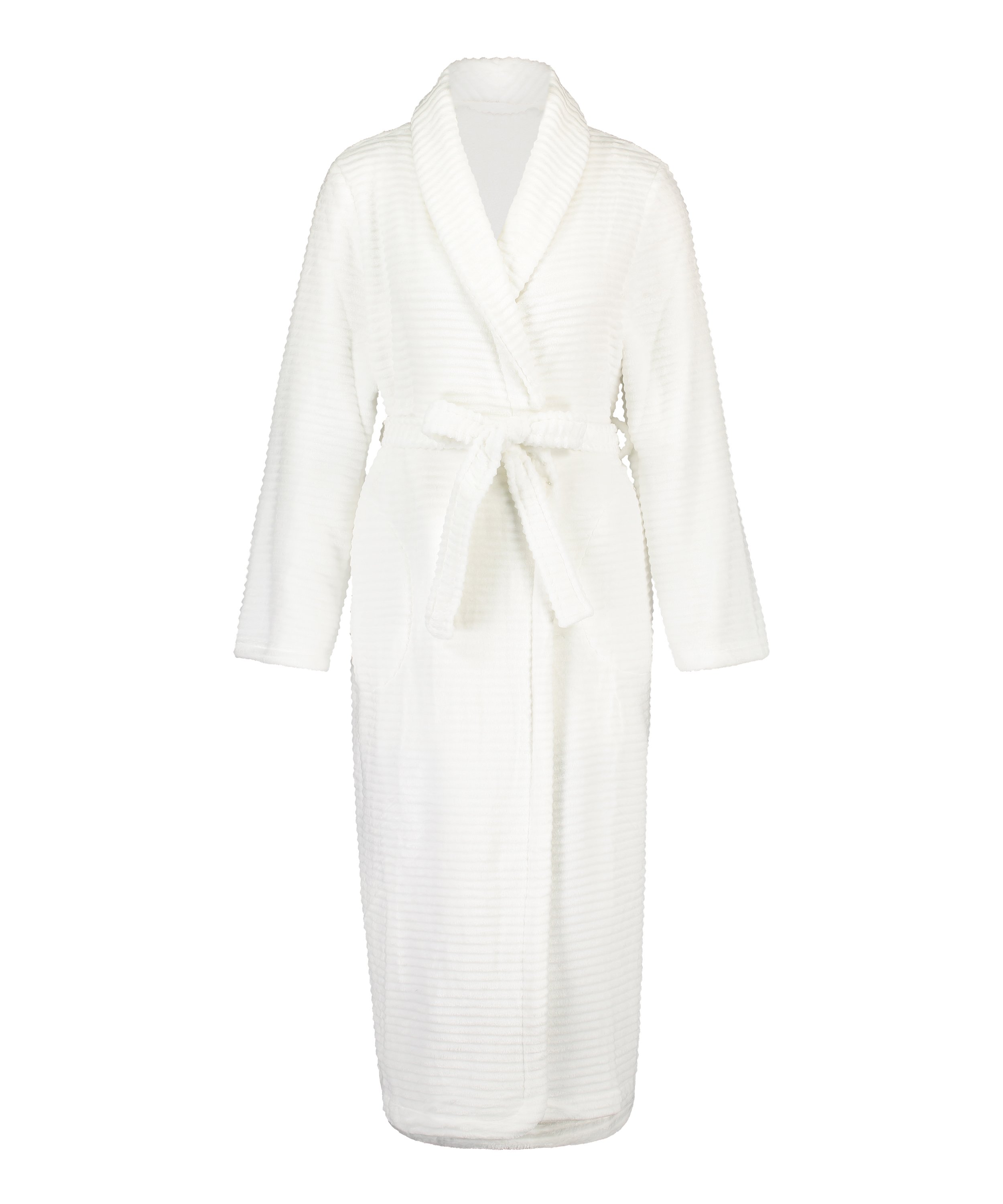 Long Fleece Ribbed Bathrobe - White