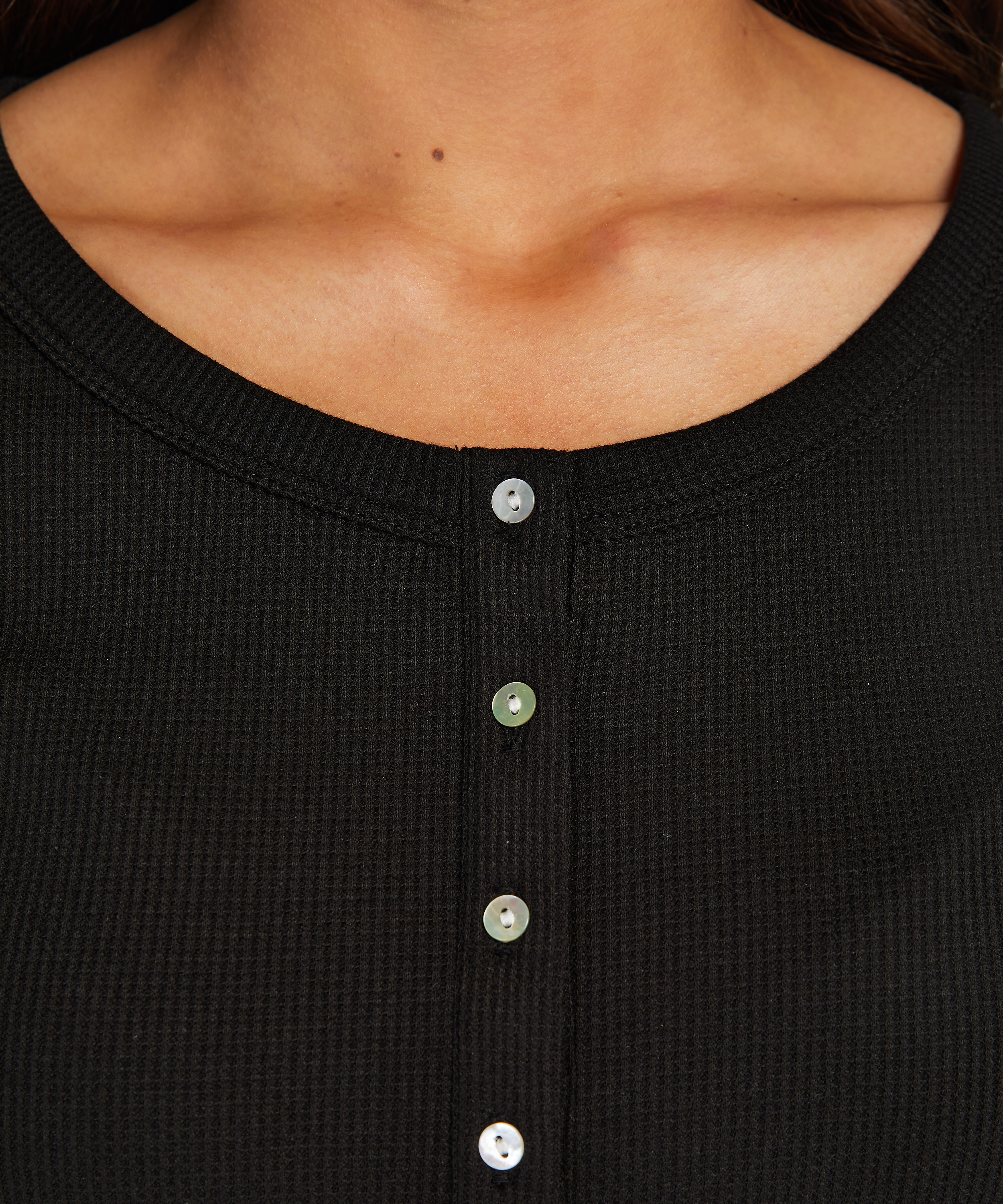 This pyjama top is ideal for a lovely relaxed day or for a long and comfortable sleep. It is made from waffled fabric and can be combined with various pyjama pants.