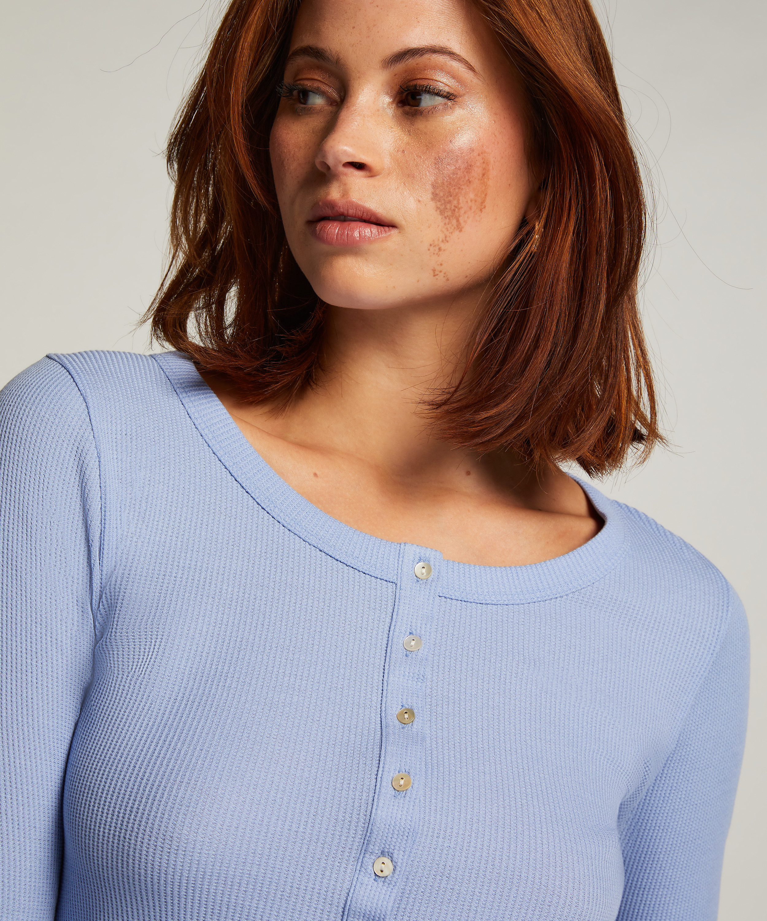 This pyjama top is ideal for a lovely relaxed day or for a long and comfortable sleep. It is made from waffled fabric and can be combined with various pyjama pants.
