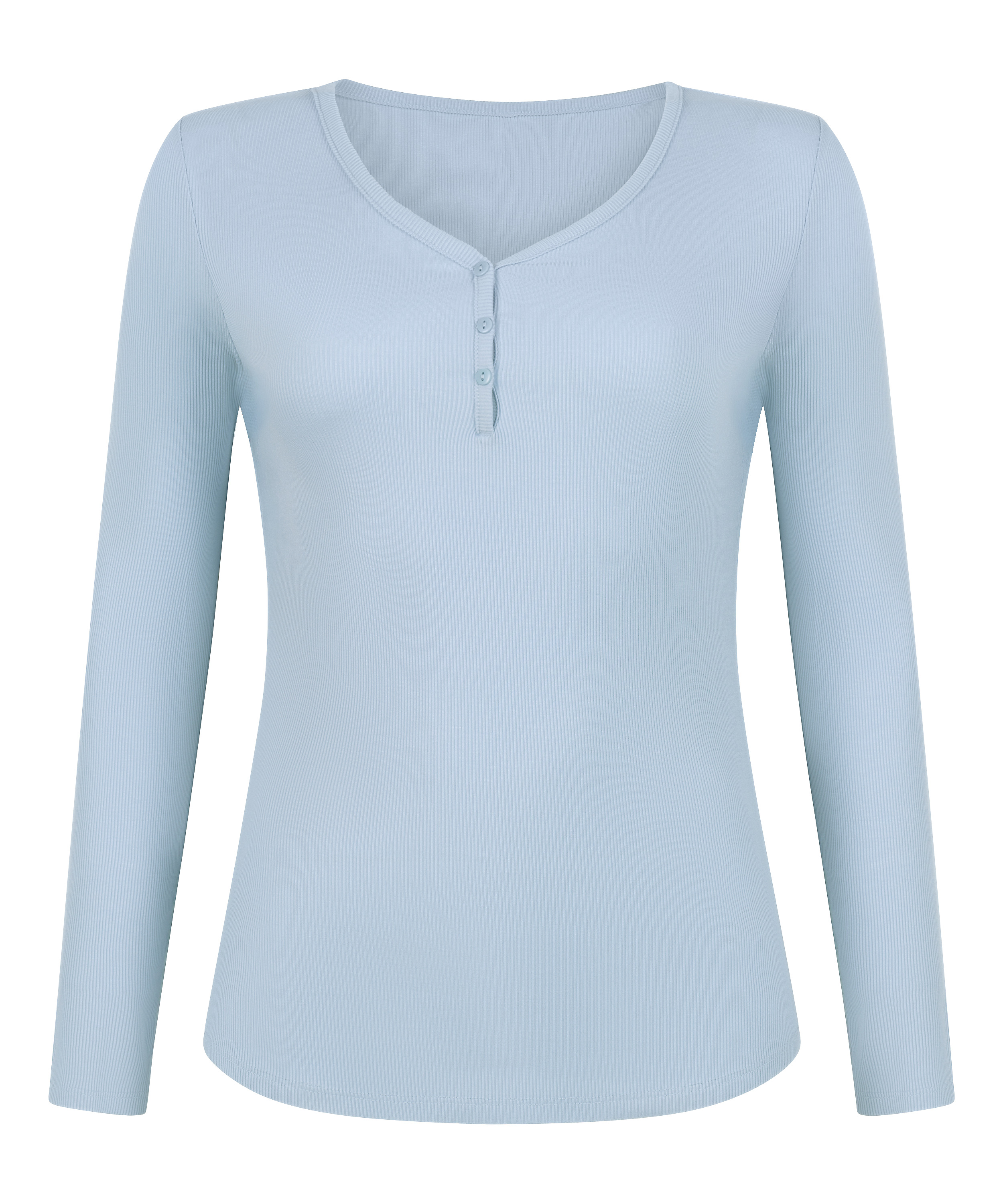 Wrap yourself in comfort with our pyjama top – the perfect blend of softness and style. Made from a stretchy ribbed fabric that moves with you, this top features a flattering slim fit, long sleeves, and a button-up neckline for a classic touch. Whether you're lounging at home or winding down for the night, it’s your go-to for effortless comfort. Combine with your favorite nightwear items for a complete look.