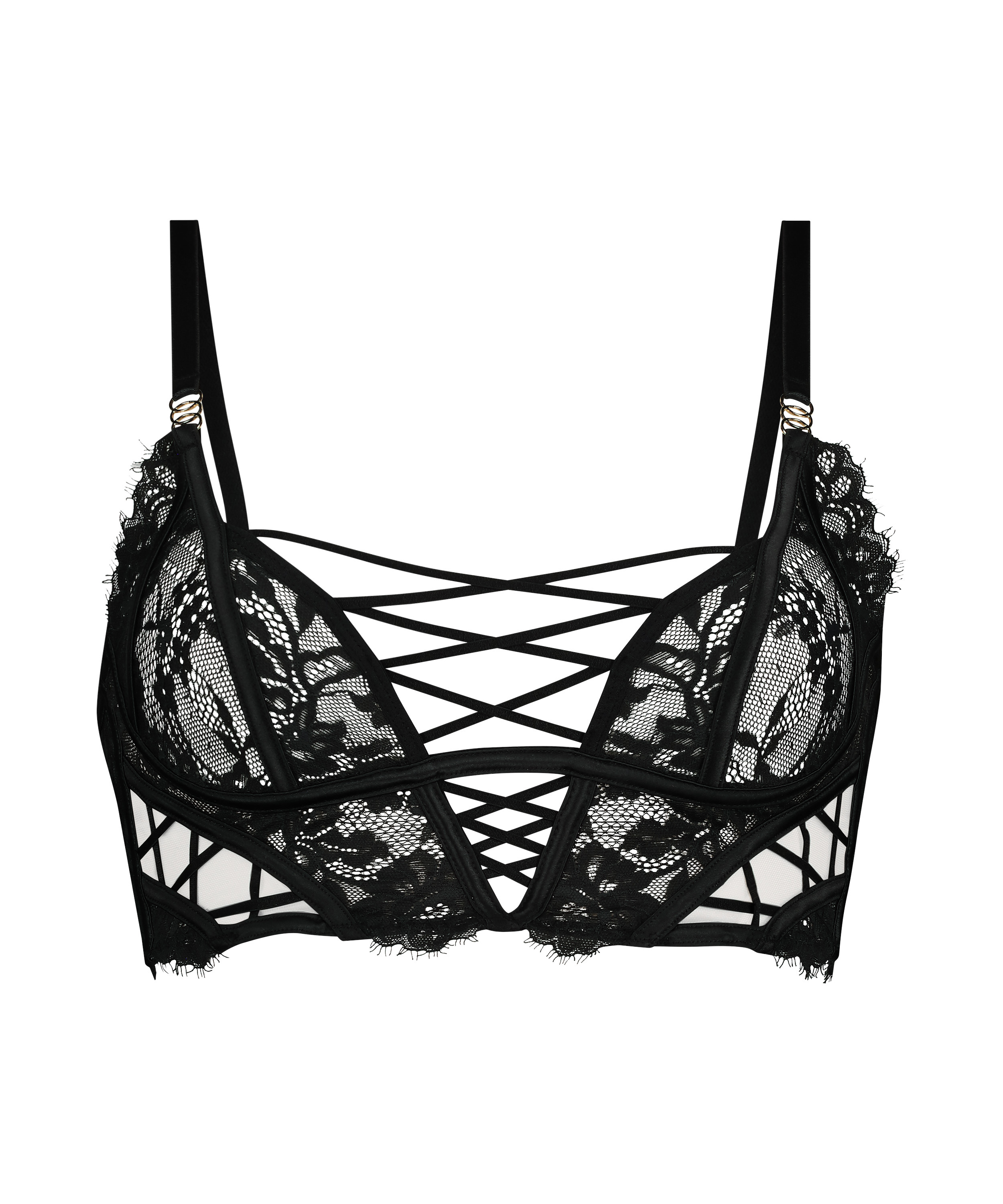 Go for a sexy and exciting lingerie set with this bra featuring semi-transparent lace and strappy details. From our Private collection.